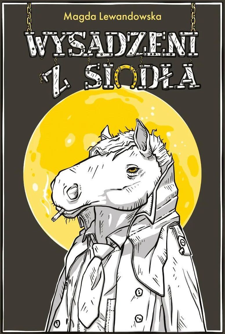 Wyobraźmy sobie, że nasz rozleniwiony, przesypiający życie na kanapie kot staje się członkiem organizacji terrorystycznej. Nad porządkiem i prawem nadzór utrzymują konie chodzące na dwóch nogach, którym nieobce są ludzkie nałogi (fast foody z koniczyny i słodkie nalewki), oraz kury mieszkające w pałacu i żyjące według zasad zakonnych. Kanałami rządzą jeże-chemicy, które zaopatrzone w swoje magiczne fiolki, wzbudzają postrach w dzielnicy. Gdzie w tym wszystkim są ludzie? Wymarli dawno temu. Macie ochotę na więcej? Czeka Was jazda bez trzymanki po niesamowitym świecie postapo, pełnym zaskoczeń i zwrotów akcji, w środek szaleńczej pogoni za szczepionką na wirus zagrażający jednemu z gatunków. Nigdy bym nie przypuszczała, że w moje dłonie trafi książka, w której ludzkość zniknie ze świata, a zapanują nad nim zwierzęta - kocie podziemie, kolonia kur, konie i... pijane szczury! Brzmi odjechanie? I takie jest! To niesamowita uczta dla wyobraźni! Świat ten - pełen tajemniczości, spisków, a nawet brutalności i wszechobecnego sarkazmu - pochłonie Was już od pierwszych stron i przysięgam - nie znajdziecie długo nic równie oryginalnego do przeczytania! Polecam z całego serca. @sliwkowy.kompocik Pierwsze strony "Wysadzonych z siodła" mogą zdenerwować (zwłaszcza kiedy tak jak ja jesteście kociarzami), jednak irytacja szybko przeradza się w ciekawość, a ta w fascynację opowieścią o Billu i jego towarzyszach. Magda Lewandowska pokazuje świat bez ludzi, więc mogłoby się wydawać, że lepszy. Czy na pewno? Resztę doczytajcie sami, do czego gorąco zachęcam. Joanna Wlazło, magazyn Vege Notatka o Autorce Magda Lewandowska - ilustratorka, pisarka, architektka, chórzystka. Zakochana w zwierzętach wolontariuszka Fundacji Głosem Zwierząt. Przez wielu znana jako Koniauke - autorka setek zwierzęcych (i nie tylko!) portretów. "Wysadzeni z siodła" są jej debiutancką powieścią. Spis treści: Rozdział 1. Jak spaść, to z wysokiego konia Rozdział 2. Coś mi tu śmierdzi Rozdział 3. Pierwsze koty za płoty Rozdział 4. Ściany mają uszy Rozdział 5. Pańskie oko konia tuczy Rozdział 6. Kto pyta, nie błądzi Rozdział 7. Nocą wszystkie koty są czarne Rozdział 8. Cel uświęca środki Rozdział 9. Łaska pańska na pstrym koniu jeździ Rozdział 10. Lepiej późno niż wcale Rozdział 11. Jak kot na cztery łapy Rozdział 12. Jak kot z pęcherzem Rozdział 13. Brzydkie jeżątko Rozdział 14. Nieszczęścia chodzą parami Rozdział 15. Trafiła kosa na kamień Rozdział 16. Nie mów hop Rozdział 17. Kot w worku Rozdział 18. Jak łyse konie Rozdział 19. Jedna jaskółka wiosny nie czyni Rozdział 20. Klapki na oczach Rozdział 21. Apetyt rośnie w miarę jedzenia Rozdział 22. Jak ślepej kurze ziarno Rozdział 23. Najciemniej pod latarnią Rozdział 24. Komu w drogę, temu czas Rozdział 25. Wszystkie drogi prowadzą na bazarek Rozdział 26. Stara miłość nie rdzewieje Rozdział 27. Między bajki