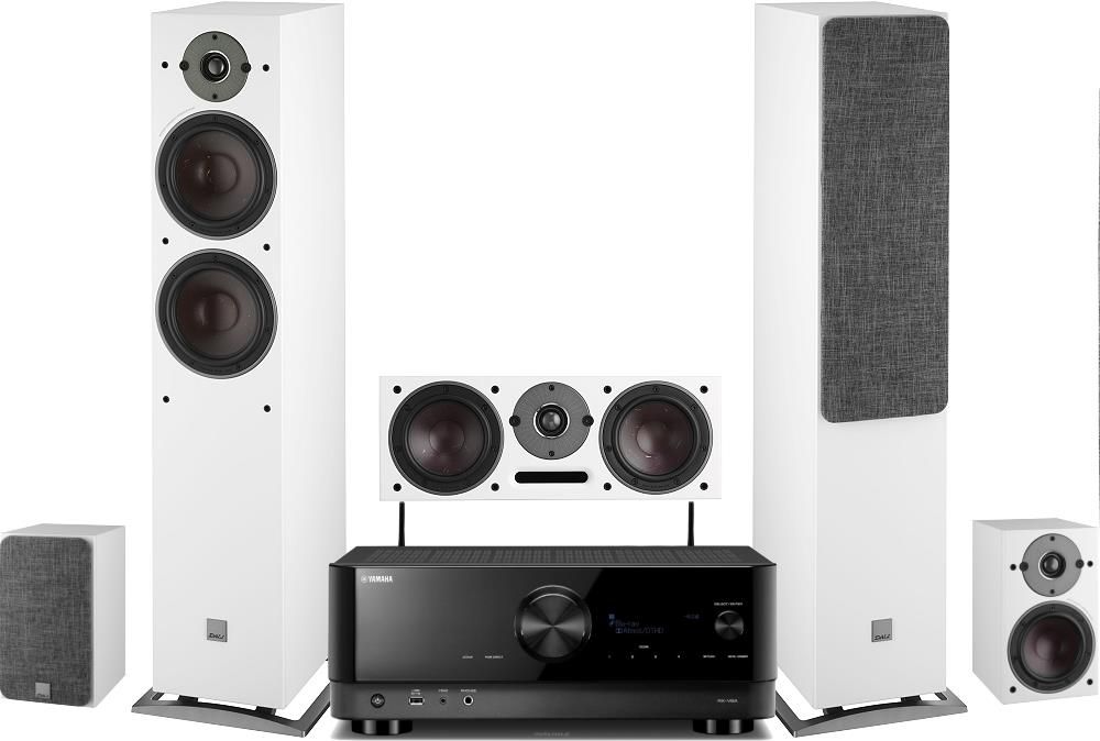 Zestaw kina domowego składający się z bogato wyposażonego amplitunera Yamaha RX-V6A oraz zestawu kolumn głośnikowych Dali Oberon