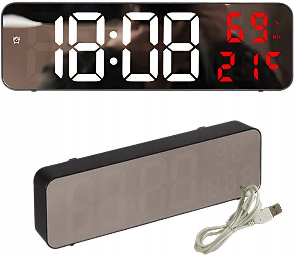 ZEGAR ELEKTRONICZY CYFROWY LED BUDZIK TERMOMETR LUSTRO STOJĄCY USB BATERIE Nowoczesny zegar cyfrowy LED to wielofunkcyjne urządzenie, które łączy w sobie stylowy design z praktycznością. Wyświetla godzinę, temperaturę, poziom wilgoci oraz pełni funkcję budzika, co czyni go idealnym dodatkiem do każdej sypialni, biura czy salonu. Dzięki powierzchni o lustrzanym wykończeniu, zegar pełni również rolę praktycznego elementu dekoracyjnego. Zasilany przez USB lub baterie, zegar jest wygodny i mobilny – można go ustawić w dowolnym miejscu. Wyraźny wyświetlacz LED zapewnia doskonałą czytelność. Funkcja budzika z opcją drzemki oraz wbudowany termometr, który monitoruje temperaturę otoczenia, sprawiają, że jest to wszechstronny gadżet do codziennego użytku. POSIADA FUNKCJĘ: ✅ Czasu rzeczywistego ✅ Daty ✅ Temperatury w stopniach Celsjusza lub w Fahrenheitach ✅ Alarmu ✅ Drzemki ✅ Poziom wilgoci w powietrzu SPECYFIKACJA TECHNICZNA: ✅ Kod produktu: 27369_CZE ✅ Wysoka jakość wykonania ✅ Posiada nowoczesny design ✅ Ekran zegara spełnia funkcję lusterka ✅ Posiada duży i czytelny wyświetlacz LCD ✅ Wyświetlacz LCD podświetlany jest na biało i czerwono ✅ Wyświetla godzinę w formacie 12/24h ✅ Alarm ✅ Wskaźnik poziomu wilgoci ✅ Zasilanie: 3 x bateria AAA (brak w zestawie) i kabel USB ✅ Wymiary zegara: 23cm x 7cm x 3,5cm ✅ Kolor: czarny ( czerwony ) ✅ Produkt posiada certyfikat CE ZESTAW ZAWIERA: ☑️ Fabrycznie nowy zegar wielofunkcyjny ☑️ Kabel USB ☑️ Oryginalne opakowanie