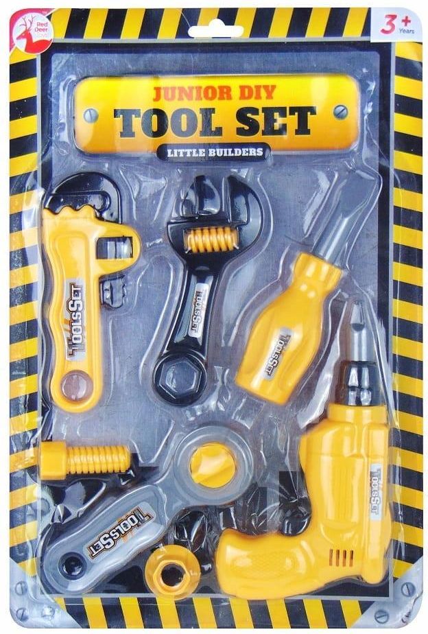 Zestaw narzędzi do majsterkowania dla dzieci, umożliwia naukę poprzez zabawę. Zabawa zestawem małego majsterkowicza pomoże dziecku rozwijać zdolności manualne. Zestaw zawiera 7 elementów wiertarkę śrubokręt klucze śrubę nakrętki Zabawka przeznaczona jest dla dzieci powyżej 3 roku życia.