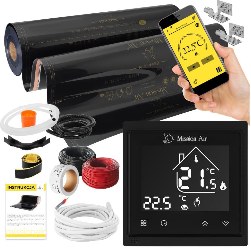 Zestawy z folą grzewczą na podczerwień Black Gold PTC 160W/m², szerokość folii 100cm 1,5 m² Libra Black WiFi Wrocław