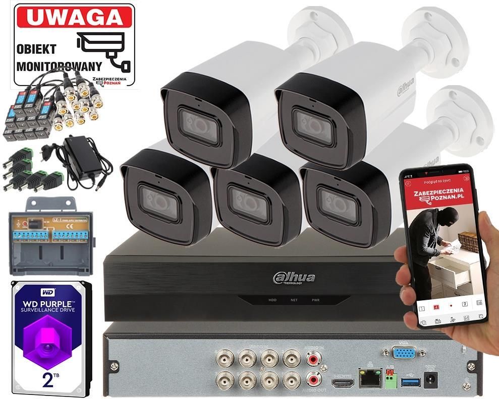 2 KAMERY REEJSTRATOR DAHUA 5MPX NOC KOLOR MIKROFON Zestaw inteligentnego monitoringu hybrydowego Dahua z 2 kamerami 5MPx Full-Color oraz rejestratorem z serii Wizsense Zestaw 2 kamer z rejestratorem Dahua charakteryzuje się zdolnością pracy hybrydowej (sygnał analogowy HD, CVBS i sieciowy), współpracuje z kamerami w 5 technologiach: TVI, CVI, AHD, CVBS i IP, zapewnia podgląd obrazu w czasie rzeczywistym oraz możliwość nagrywania w rozdzielczości 5MPx. Kamery z serii Full-Color Starlight są w stanie przetwarzać kolorowy obraz z bogatymi szczegółami nawet w warunkach całkowitej ciemności. Rejestrator z serii Wizsense posiada możliwość filtrowania fałszywych alarmów w oparciu o rozpoznawanie osób oraz pojazdów (przekroczenie linii, wtargnięcie). Skład zestawu monitoringu Dahua 2 kamery analogowe HAC-HDW1509T-A-LED-0280B-S2 Full-Color 5MPx; 1 rejestrator 4-kanałowy XVR5104HS-4KL-I3 Wizsense; 1 dysk twardy do pracy ciągłej HDD-WD10PURZ 1TB 24/7 WD; 4 transformatory wideo TR-1D-UHD; 1 zasilacz impulsowy do kamer 12V/5A/5.5; Komplet niezbędnych wtyków, złącz + łączówka zasilania LZ-1; tabliczka informacyjna Kupując gotowy zestaw analogowy do obiektów objętych monitoringiem całodobowym marki Dahua zyskasz hybrydowe kamery pozwalają na pracę w czterech różnych systemach monitoringu: HD-CVI, HD-TVI, AHD oraz PAL, możliwość przeszłej rozbudowy monitoringu o 2 kamery analogowe oraz 4 kamery IP poprzez switch PoE, transmisję na duże odległości analogowego sygnału wizyjnego za pośrednictwem kabla koncentrycznego, kolorowy obraz przez 24h na dobę, wsparcie technologii Starlight - wyraźny obraz w warunkach bardzo słabego oświetlenia filtrowanie fałszywych alarmów, zaawansowane funkcje ochrony obwodowej: wtargnięcie, przekroczenie linii z uwzględnieniem osobnych zasad dla pojazdów i pieszych, stały dostęp do nagrań i podgląd na żywo, pewność, że nagrania nie ulegną uszkodzeniu, Dla kogo? przeznaczenie? Technologia HDCVI gwarantuje transmisję w czasie rzeczywistym na duże odległości bez strat jakości. Obsługuje transmisję do 700m przez kabel koncentryczny i do 300m przez kabel UTP. Z powodzeniem sprawdzi się w monitoringu zewnętrznym: domu, sklepu, firmy, parkingu Dlaczego warto wybrać ten model kamery? nagrywa w rozdzielczości 2880 x 1620 - to świetna jakość gwarantująca szeroki kadr i duże zagęszczenie pikseli Full-Color - oświetlacz LED emitujący widzialne światło w kolorze białym pozwala na uzyskanie kolorowego obrazu nawet w nocy Starlight - wystarcza bardzo słabe oświetlenie do uzyskania wyraźnego kolorowego obrazu. posiada obiektyw 2.8mm o kącie widzenia ok. 112° 4 sygnały w 1 kablu - obsługuje 4 sygnały przesyłane przez 1 kabel koncentryczny jednocześnie, tj. wideo, audio, dane i zasilanie D-WDR, BLC/HLC - funkcje poprawiające jakość obrazu wyświetla obraz 2K w czasie rzeczywistym - w połączeniu z rejestratorem Real-time XVR przetwarza obraz z wyraźnymi szczegółami, bez opóźnień i rozmazań posiada wbudowany mikrofon - umożliwia nagrywanie nie tylko obrazu, ale także rejestrowanie dźwięku oświetlacz LED o zasięgu 40m pozwalają kamerze przetwarzać obraz dobrej jakości w całkowitej ciemności dzięki klasie szczelności IP67 gwarantuje pełną odporność na silne strumienie wody oraz zapylenie - może być instalowana na zewnątrz Najważniejsze cechy rejestratora hybrydowego Dahua XVR5104HS-4KL-I3 nagrywa w rozdzielczości do 8 Mpx - to wysoka jakość gwarantująca szeroki kadr i duże zagęszczenie pikseli 5 trybów pracy: 4 x AHD / HD-CVI / HD-TVI / CVBS / IP + 4 x IP auto-detect automatycznie rozpoznać sygnał kamery bez żadnych dodatkowych ustawień transmisja na duże odległości AI-Coding - obsługuje pełnokanałowe kodowanie współpracuje z kamerami z analityką obrazu IVS Real Time Face Recognition - analizuje płeć, wiek, ekspresja, okulary, wąsy, usta SMD PLUS - wyszukiwanie obiektu sklasyfikowanego umożliwia na sterownie głowicami obrotowymi PTZ ma zdalny podgląd na żywo w aplikacji producenta posiada miejsce dysk HDD do 10 TB archiwizuje na zewnętrznych nośnikach USB dostęp z telefonu komórkowego (android, iOS) Obsługa w aplikacji na telefon Aplikacja na telefon DMSS umożliwia zdalny podgląd z systemu monitoringu IP, dzięki systemowi pracy w chmurze. Zdalne połączenie z rejestratorem i kamerami IP, dzięki usłudze P2P (Peer to Peer) daje możliwość zarządzania systemem monitoringu, dodawania nowych kamer. Kolorowy obraz przez całą dobę Kamera analogowa HAC-HDW1509T-A-LED-0280B-S2 wyposażona została w nowoczesny oświetlacz światła białego LED z zasięgiem do 40 m. Technologia Full Color zapewnia kolorowy obraz nawet w nocy. Technologia składa się z z trzech przełomowych technologii sprzętowych: oświetlacza światła białego zaawansowanego obiektywu stałoogniskowego światłoczułego przetwornika wysokiej klasy Detekcja ruchu + Inteligentna analiza obrazu Rejestrator posiada wsparcie dla Inteligentnej Analizy Obrazu oraz detekcji ruchu, dzięki czemu doskonale nadaje się do zastosowania z nowoczesnymi kamerami IP. Dodatkowo możliwość podglądu na żywo na smartfonie obrazu z kamer pozwala ocenić sytuację na bieżąco, gdyż otrzymujemy stosowne powiadomienie na telefon w momencie wyzwolenia alarmu/wykrycia zdarzenia. Funkcje realizowane są przy współpracy rejestratora z kamerami obsługującymi te funkcje: zaawansowane funkcje ochrony obwodowej: wtargnięcie, przekroczenie linii z uwzględnieniem osobnych zasad dla pojazdów i pieszych, klasyfikacja ludzi i pojazdów, detekcja twarzy, SMD PLUS - wyszukiwanie obiektu sklasyfikowanego jako: człowiek, pojazd silnikowy, pojazd bezsilnikowy Zaawansowane funkcje rozpoznawania i wyszukiwania twarzy Porównanie twarzy z obrazami z bazy danych Analiza twarzy: określenie płci, wieku oraz charakterystycznych elementów wyglądu (okulary, zarost, maska) Wyszukiwanie w czas