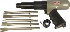 Profesjonalny pneumatyczny młotek udarowy FACH wraz z osprzętem niezbędnym do pracy. Urządzenie znajdzie zastosowanie wszędzie tam, gdzie liczy się wysoka efektywność i sprawność działania operatora młotka (przemysł, budownictwo), ale i do prac półprofesjonalnych i amatorskich.WYPOSAŻENIE ZESTAWU: młotek 190 mm, dłuta o różnych końcówkach, sprężyna młotka, instrukcja w języku polskim. DANE TECHNICZNE: Cykl uderzeń na minutę [c.p.m.] 2100 Zużycie powietrza [l/min] 254 - 680 Średnica grotu [mm] 19 Długość dłuta [mm] 190 Wibracje [m/s2] 9,3 Hałas [db] 104 - 115 Maksymalne ciśnienie robocze [bar] 6,2 Minimalna średnica przewodu [mm] 8 Waga [kg] 2,6