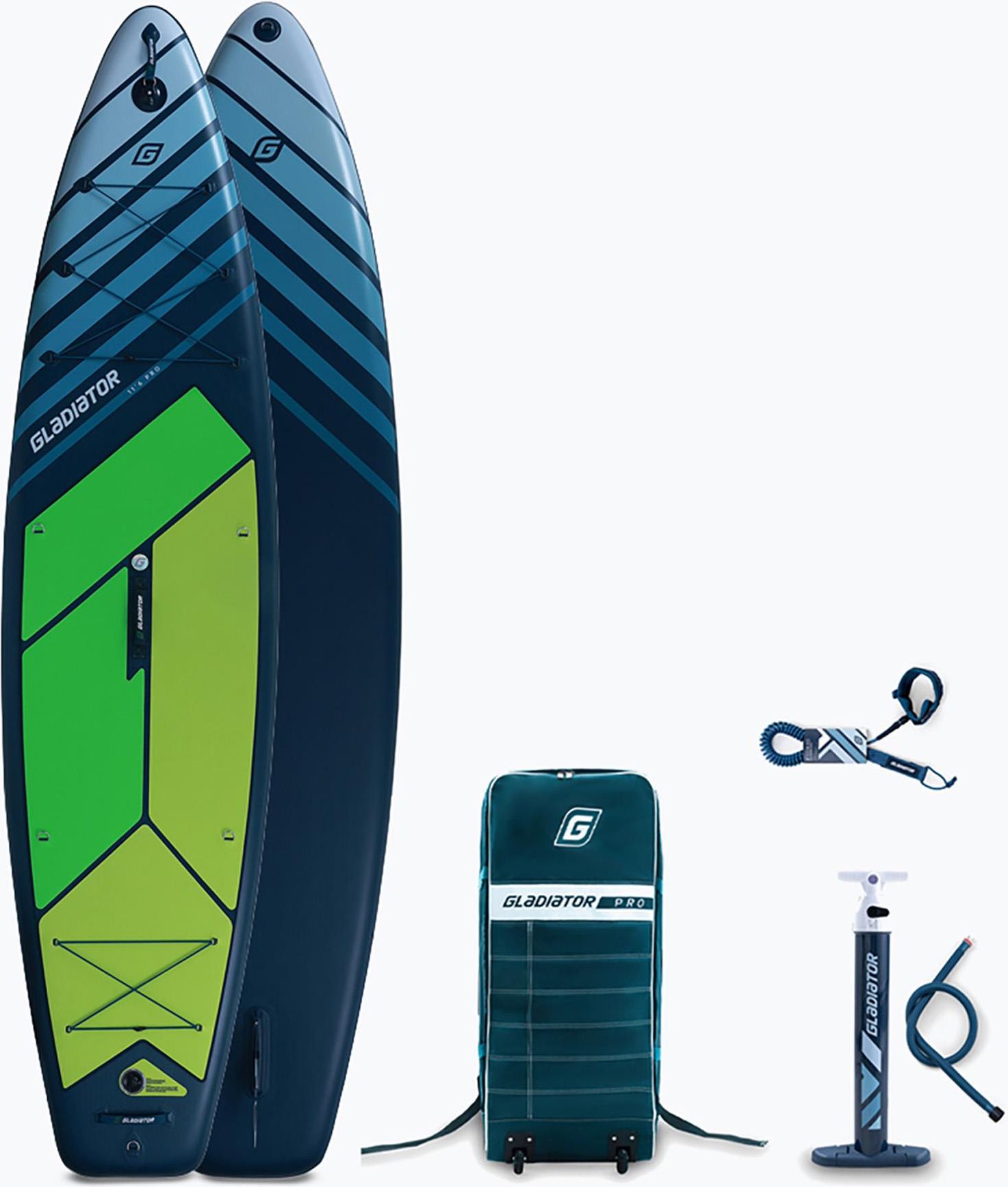 Deska SUP Gladiator Pro 11'6 - może być wykorzystywana zarówno do pływania sportowego i spokojnego relaksu Bardzo dobrze znana i lubiana przez użytkowników deska teraz w nowej odsłonie graficznej Deska klasy Premium, która gwarantuje niezapomniane wrażenia zarówno podczas spokojnego dryfowania na lekkich falach, jak i podczas pokonywania długich tras, gdzie liczy się szybkie tempo. Kształt touringowy czyli spiczasty nos i prosta ścięta rufa pomagają w rozwinięciu prędkości, a szerokość 34" - 86 cm pozwala na zachowanie stabilności. Gladiator Pro 11'6 to nadmuchiwana deska SUP stworzona dla wioślarzy o różnym poziomie zaawansowania – również tych o większej wadze w zakresie 90 - 140 kg, Idealna zarówno do rekreacyjnych wypraw po jeziorze, spokojnych rzekach, jak i zabawy na małych falach. Technologia zgrzewania dwuwarstwowego z wzmocnionymi brzegami dodatkową taśmą XStrong daje efekt bardzo wytrzymałej, sztywnej deski. Deska SUP Gladiator Pro 11'6 - najważniejsze parametry techniczne Długość: 11'6" - 384 cm Szerokość: 34" - 86 cm Grubość: 6" - 15 cm Waga deski: 10,5 kg Wyporność: 330 l Maksymalne obciążenie: do 200 kg Zalecana waga użytkownika: do 140 kg Zalecane ciśnienie: 22 PSI Maksymalne ciśnienie: 26 PSI Możliwość zamontowania siedziska: Tak Więcej w zakładce "Parametry" Deska SUP Gladiator Pro 11'6 - cechy deski Firma Gladiator projektuje deski SUP z myślą o komforcie użytkownika, oferując sprzęt gotowy na wodne przygody. Każdy model zapewnia: antystpoślizgową powierzchnię na pokładzie dla stabilności, kickpad na rufie dla lepszych skrętów, podwójną strefę bagażową dla większej pojemności i lepszego ułożenia bagażu, solidne uchwyty do przenoszenia, cztery D-ringi do mocowania siedziska, statecznik touringowy 9" zwiększający stabilność. Deska SUP Gladiator Pro 11'6 - akcesoria w zestawie 1. Zestaw podstawowy Wiosło SUP - 100% z włókna węglowego Plecak - z kółkami ułatwiającymi prowadzenie po utwardzonym podłożu Pompka Bravo Double Action - dwufazowa sprawiająca, że pompowanie jest wygodniejsze Coil Leash - smycz bezpieczeństwa w formie sprężynki, nie plącze się podczas użytkowania Statecznik touringowy - 9" wytrzymały, montowany na śrubkę US Box Zestaw naprawczy w tubie 2. Zestaw z wiosłem 2 w 1 Wszystkie akcesoria z zestawu podstawowego tj. wiosło, plecak, pompka, leash, statecznik, zestaw naprawczy Dodatkowe pióro PRO, które ze standardowego wiosła SUP tworzy kajakowe 2 w 1, dzięki temu wygodnie pływa się na siedząco 3. Zestaw kajakowy combo Akcesoria takie jak w zestawie z wiosłem 2 w 1 uzupełnione o siedzisko kajakowe Gladiator mocowane do d-ringów za pomocą regulowanych pasów 4. Zestaw podstawowy z pompką elektryczną Wszystkie akcesoria z zestawu podstawowego tj. wiosło, plecak, pompka, leash, statecznik, zestaw naprawczy Pompka elektryczna PBG 8 zasilana z gniazda samochodowego 12 V, z mocą pompowania do 20 PSI 5. Zestaw MAXI Wszystkie elementy z zestawu kajakowego combo czyli: wiosło, dodatkowe pióro do wiosła 2 w 1 kajakowego, siedzisko kajakowe, plecak, pompka, leash, statecznik, zestaw naprawczy Pompka elektryczna PBG 8 zasilana z gniazda samochodowego 12 V, z mocą pompowania do 20 PSI