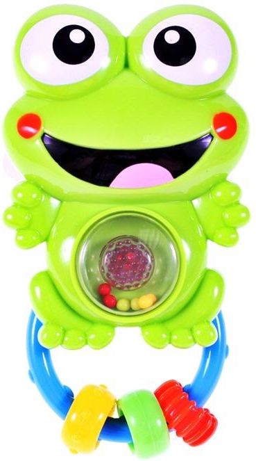 Interaktywna grzechotka w kształcie żaby będzie idealnym prezentem dla każdego niemowlaka. Grzechocząca żabka zachęci do zabawy ciekawym wzornictwem, efektami dźwiękowymi i migającym światełkiem, które szczególnie podoba się maluchom. Po poruszeniu kółeczkiem grzechotki zwierzątko wyda różne odgłosy, zacznie grać melodyjkę (wgranych jest kilka naprzemiennie), usłyszymy również wesoły dziecięcy śmiech. Zabawka posiada również efekty wizualne - po poruszeniu zaczyna mrugać czerwone światełko. W brzuszku znajdują się kuleczki które poruszają się przy ruszaniu grzechotką, a na kółeczku znajdują się mniejsze ruchome kółeczka. Grzechotka wspomaga naukę chwytania i wrażliwość na dźwięki. Zabawka jest kolorowa, a różne atrakcje przyciągają uwagę niemowlaka. Stonowany, miły dla ucha dźwięk z pewnością nie przestraszy dziecka. Wszystkie zabawki sprzedawane w naszym sklepie posiadają niezbędne certyfikaty CE. Zabawka sprzedawana wraz z opakowaniem.