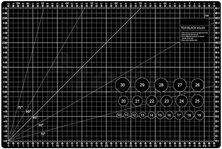 TEXI BLACK 45X30 Mata podkładowa, samoregenerująca, dwustronna, czarna, 45x30 cm 5 - warstwowa, dwustronna mata podkładowa TEXI BLACK 45X30 z podziałką centymetry oraz cale w kolorze czarnym. Mata z zaznaczonymi kątami i liniami równoległymi o rozmiarze: 45X30 cm. Mata podkładowa - samoregenerująca …