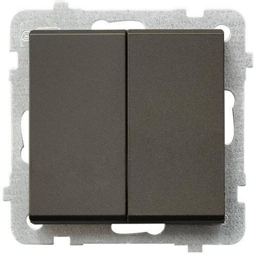 #html-content-6# Łącznik posiadający dwa klawisze. Dwa oddzielne łączniki schodowe umieszczone w jednym module. Jeden łącznik zamiast dwóch zajmuje mniej miejsca. Do zastosowania np. na półpiętrze skąd poszczególnym klawiszem włącza/wyłącza się oświetlenie w górnej lub dolnej części schodów. Może służyć do łączenia dwóch oddzielnych obwodów. Do kompletu wymagana ramka. Można stosować do systemów ramkowych wielokrotnych. Łącznik w standardzie posiada stopień ochrony IP-20, ale istnieje możliwość zabudowy go jako łącznika IP-44. Pozwala to na zastosowanie go w środowisku o zwiększonej wilgotności. W tym celu należy nabyć zestaw uszczelniający. #html-content-11##html-content-12#