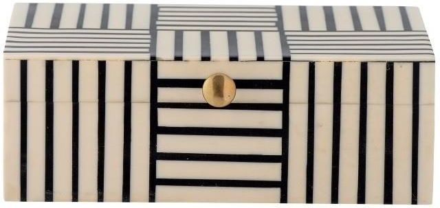 Pudełko w paski Neoma od marki Bloomingville jest jednocześnie piękne i praktyczne. Pudełko zostało udekorowane pięknym wzorem w paski i małym, złotym uchwytem. Pozwoli na przechowywanie w nim drobiazgów, ale może być też po prostu dekoracją pomieszczenia. Neoma zostało wykonane z żywicy, dzięki czemu jest miękkie w dotyku i ma gładką powierzchnię.