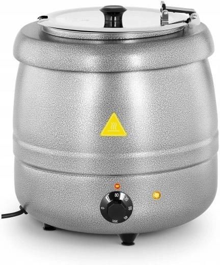 Kociołek termos do zupy elektryczny ze stali nierd Royal Catering Kod producenta: 10012067 Elektryczny kociołek do zupy marki Royal Catering pozwoli utrzymać ciepło serwowanym zupom, sosom czy gulaszom. Sprawdzi się w restauracjach czy firmach cateringowych oraz podczas wesel, studniówek, balów i innych imprez. W kociołku zastosowano łaźnię wodną, która zapewnia podgrzewanie bez przypaleń. Przekazuje ona ciepło generowane przez grzałkę o mocy 400 W do wewnętrznego zbiornika urządzenia (10 l). Regulacja grzania następuje w zakresie 35-80°C i ustawiana jest pokrętłem. Wewnętrzny zbiornik i obudowa wykonane zostały ze stali nierdzewnej, odpornej na uszkodzenia mechaniczne, bezpiecznej dla zdrowia i łatwej w utrzymaniu czystości. Pokrywka z nienagrzewająca się rączką oraz zawiasem chroni zawartość przed szybkim ostyganiem. Cechy produktu: - Efektowność - utrzymuje ciepło zup, sosów i gorących napojów bez przypalania, - Przestronność - duża pojemność 10 l i mocny element grzewczy 400 W do dużych ilości jedzenia, - Elastyczność - szeroki zakres temperatur 35-80°C umożliwia dostosowanie do różnych potraw, - Bezpieczeństwo - pokrywa z nienagrzewającym się uchwytem cool-touch zapewnia bezpieczną obsługę, - Łatwe czyszczenie - obudowa, wyjmowany pojemnik wewnętrzny i pokrywka wykonane z wytrzymałej stali nierdzewnej. Parametry techniczne: - Kod produktu - 10012067 - Model - RCST-9405 - Napięcie [V] - 230 - Instrukcja obsługi - Tak - Uchwyty boczne - Nie - Kolor - Ciemnoszary - Zakres regulacji temperatury [°C] - 35-80 - Moc [W] - 400 - Przewód zasilający [m] - 1,1 - Materiał pojemnika wewnętrznego - Stal nierdzewna - Materiał pojemnika zewnętrznego - Stal - Pojemność [l] - 10 - Wymiary (DxSxW) [cm] - 23 x 23 x 23.5 - Waga [kg] - 4,4 - Wymiary wysyłki (DxSxW) [cm] - 37 x 37 x 39.5 - Waga wysyłki [kg] - 4,85 W zestawie: - Kociołek do zupy - Pokrywka - Pierścień - Pojemnik wewnętrzny - Instrukcja obsługi Kod producenta: 1013024 Kod producenta: 10012067 Elektryczny kociołek do zupy marki Royal Catering pozwoli utrzymać ciepło serwowanym zupom, sosom czy gulaszom. Sprawdzi się w restauracjach czy firmach cateringowych oraz podczas wesel, studniówek, balów i innych imprez. W kociołku zastosowano łaźnię wodną, która zapewnia podgrzewanie bez przypaleń. Przekazuje ona ciepło generowane przez grzałkę o mocy 400 W do wewnętrznego zbiornika urządzenia (10 l). Regulacja grzania następuje w zakresie 35-80°C i ustawiana jest pokrętłem. Wewnętrzny zbiornik i obudowa wykonane zostały ze stali nierdzewnej, odpornej na uszkodzenia mechaniczne, bezpiecznej dla zdrowia i łatwej w utrzymaniu czystości. Pokrywka z nienagrzewająca się rączką oraz zawiasem chroni zawartość przed szybkim ostyganiem. Cechy produktu: - Efektowność - utrzymuje ciepło zup, sosów i gorących napojów bez przypalania, - Przestronność - duża pojemność 10 l i mocny element grzewczy 400 W do dużych ilości jedzenia, - Elastyczność - szeroki zakres temperatur 35-80°C umożliwia dostosowanie do różnych potraw, - Bezpieczeństwo - pokrywa z nienagrzewającym się uchwytem cool-touch zapewnia bezpieczną obsługę, - Łatwe czyszczenie - obudowa, wyjmowany pojemnik wewnętrzny i pokrywka wykonane z wytrzymałej stali nierdzewnej. Parametry techniczne: - Kod produktu - 10012067 - Model - RCST-9405 - Napięcie [V] - 230 - Instrukcja obsługi - Tak - Uchwyty boczne - Nie - Kolor - Ciemnoszary - Zakres regulacji temperatury [°C] - 35-80 - Moc [W] - 400 - Przewód zasilający [m] - 1,1 - Materiał pojemnika wewnętrznego - Stal nierdzewna - Materiał pojemnika zewnętrznego - Stal - Pojemność [l] - 10 - Wymiary (DxSxW) [cm] - 23 x 23 x 23.5 - Waga [kg] - 4,4 - Wymiary wysyłki (DxSxW) [cm] - 37 x 37 x 39.5 - Waga wysyłki [kg] - 4,85 W zestawie: - Kociołek do zupy - Pokrywka - Pierścień - Pojemnik wewnętrzny - Instrukcja obsługi Kod producenta: 1013024 Royal Catering