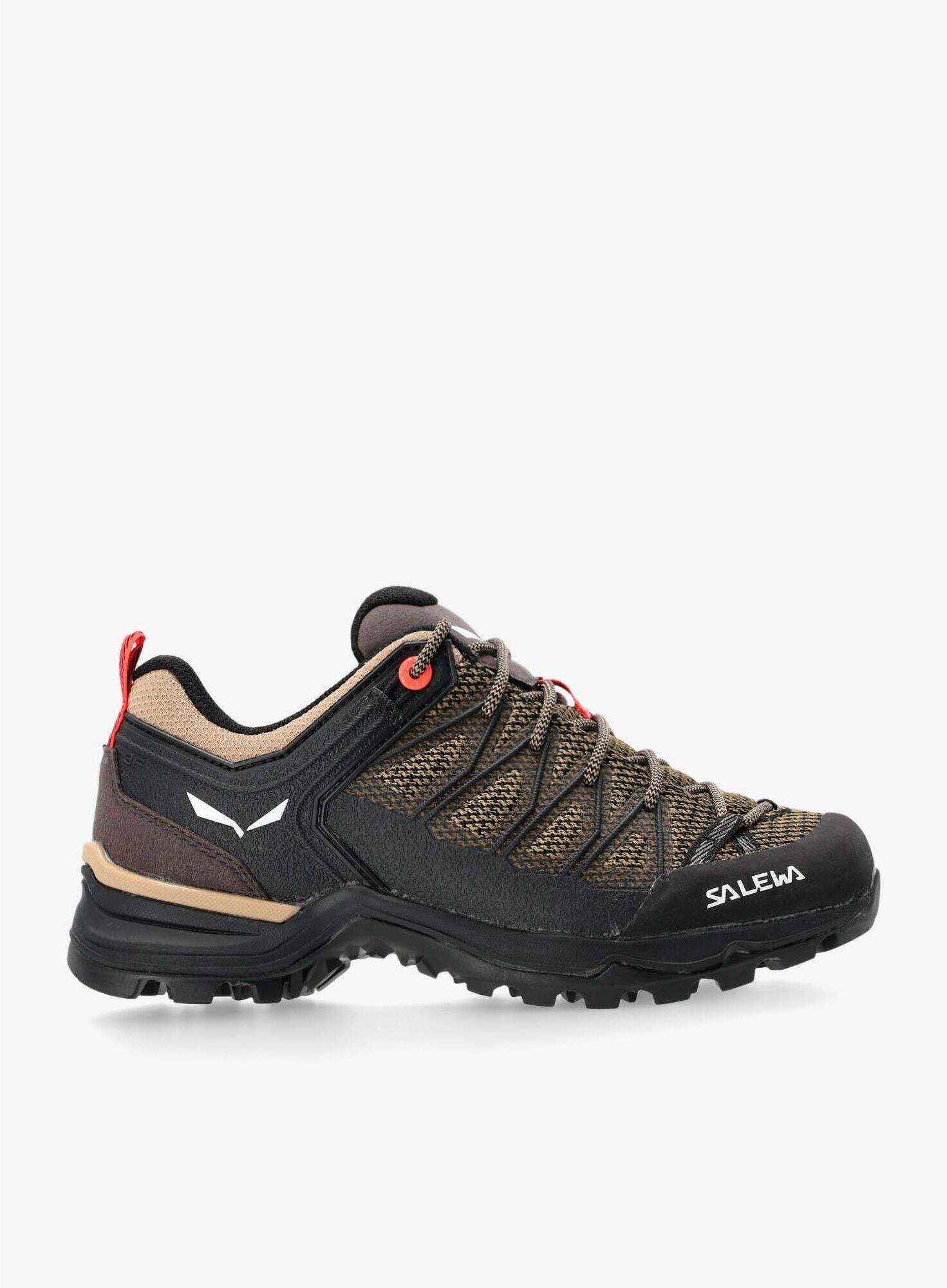 Salewa Buty turystyczne damskie Salewa Mountain Trainer Lite - quicksand/black UK 4 (36,5) Buty turystyczne damskie Salewa Mountain Trainer Lite - quicksand/black to model stworzony do długich trekkingów po szlakach o zróżnicowanych poziomach trudności. Przyczepna podeszwa wraz z zaawansowaną konstrukcją cholewki zapewniają niezbędne wsparcie i świetną stabilizację stopy podczas wędrówek. Cholewka butów w góry damskich Buty turystyczne damskie Salewa Mountain Trainer Lite - quicksand/black uszyta jest z wysoce odpornego na zużycie materiału tekstylnego. Z kolei podszewka jest wykonana z siateczki, co ma bardzo dobry wpływ na oddychalność buta, a więc i odprowadzanie nadmiaru ciepła. Cały przód butów turystycznych damskich Buty turystyczne damskie Salewa Mountain Trainer Lite - quicksand/black chroni krótki gumowy otok. Z kolei boki cholewki zostały wzmocnione specjalną cienką warstwą termoplastycznego poliuretanu. Buty trekkingowe damskie sznurowane są wiązaniami Climbing Lacing pociągniętymi niemal po same palce, a inspirowanymi butami wspinaczkowymi. Dzięki nim możliwe jest bardzo precyzyjne wiązanie. Charakterystycznym elementem obuwia górskiego Salewa, jest 3F System, a więc łączenie podbicia z podeszwą i piętą, dzięki czemu wsparcie stopy w okolicy pięty, elastyczność i właściwe dopasowanie są zapewnione w stu procentach. W butach trekkingowych damskich Salewa Mountain Trainer Lite - quicksand/black zastosowano oddychającą wkładkę Salewa, pod którą znalazła się dobrze amortyzująca śródpodeszwa z pianki EVA, a także podeszwa o podwyższonej przyczepności w terenie, a więc Pomoca MTN Trainer Lite, dedykowana właśnie do tego modelu obuwia. Jej ukształtowanie sprzyja naturalnemu przetaczaniu stopy. Buty Salewa Mountain Trainer Lite - najważniejsze cechy Cholewka z materiału o podwyższonej odporności na zużycie; Siateczkowa podszewka; Ochronny, krótki gumowy otok z przodu; Dodatkowe zabezpieczenie boków cholewki filmem z TPU; Wiązania Climbing Lacing inspirowane butami wspinaczkowymi; System 3F zapewnia doskonałe trzymanie pięty, nie ograniczając przy tym naturalnej ruchomości stawu skokowego; Oddychająca wkładka Salewa; Śródpodeszwa z pianki EVA dobrze amortyzująca każdy krok; Podeszwa Pomoca MTN Trainer Lite zapewniająca płynne przetaczanie stopy w terenie.