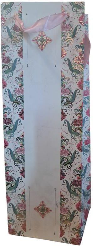 - Torebka prezentowa na butelkę - Wymiary: 36 x 12 x 10.5 cm - Wzór: kwiaty - Posiada dwie rączki w kolorze różu