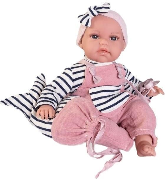 Gaworząca lalka hiszpańska Toneta z torebką Antonio Juan 70332 Szczególną popularnością wśród unikalnych lalek hiszpańskich marki Antonio Juan cieszą się bobasy interaktywne. Toneta 70332 słodko gaworzy, uatrakcyjniając dziecku zabawę w odgrywanie roli troskliwej opiekunki. Zachwyca charakterystyczna dla Tonety pogodna twarzyczka oraz niebieskie oczka opatrzone wianuszkiem długich rzęs. 34-centymetrowa lalka hiszpańska, posiada główkę i ruchome kończyny wykonane z miękkiego, przyjemnego w dotyku winylu. Dzięki miękkiemu brzuszkowi jest idealna do przytulania. W zestawie także miękka torebka dla dziecka i smoczek magnetyczny. Hiszpańska lalka Baby Toneta 70332 w komplecie z akcesoriami i szytymi ręcznie ubrankami Realistycznie wyglądająca, winylowa dziewczynka z miękkim brzuszkiem posiada wyrzeźbione włoski oraz delikatnie malowane brwi, usta, paznokcie i fałdki. Toneta od marki Antonio Juan ubrana jest w mięciutką, bawełnianą bluzeczkę w paski oraz różowe muślinowe ogrodniczki. Strój dopełnia pluszowa opaska na głowę, zdobiona kokardką. W zestawie znajduje się także smoczek na tasiemce oraz prezent dla dziewczynki: miękka torebka na ramię woreczek o kształcie rybki. Funkcyjna lalka hiszpańska Toneta 70332 marki Antonio Juan Idealna do przytulania i zabawy lalka hiszpańska 70332 posiada wszystkie wymagane certyfikaty bezpieczeństwa. Ręcznie wykonana w całości w Hiszpanii, zapakowana jest w biało-różowe, ozdobne pudełko z wieczkiem. Doskonale sprawdza się jako wyjątkowy upominek dla miłośniczki unikalnych zabawek. OSTRZEŻENIE! Zabawka nie jest odpowiednia dla dzieci poniżej 36 miesiąca. Zawiera drobne elementy, których połknięcie grozi niebezpieczeństwem. UWAGA. Przed oddaniem zabawki dziecku należy usunąć i wyrzucić wszystkie zabezpieczenia. Kolory, wzory, zawartość produktu mogą się różnić. NAZWA LALKA HISZPAŃSKA TONETA 34CM PRODUCENT ANTONIO JUAN WIEK 3+ EAN 8435083670666 Znajdź podobne według klucza: ANTONIO_JUAN LALKA (683086)