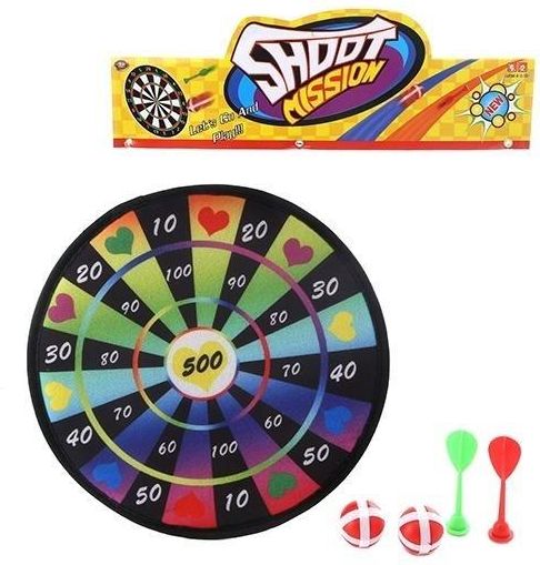 W zestawie: tarcza, piłka na rzep, strzałka na rzep, Pozostałe informacje: śr. tarczy 28 cm, wym. opak. folia 29,5 x 33,5 x 4 cm, 3+ Grupa wiekowa: 3+