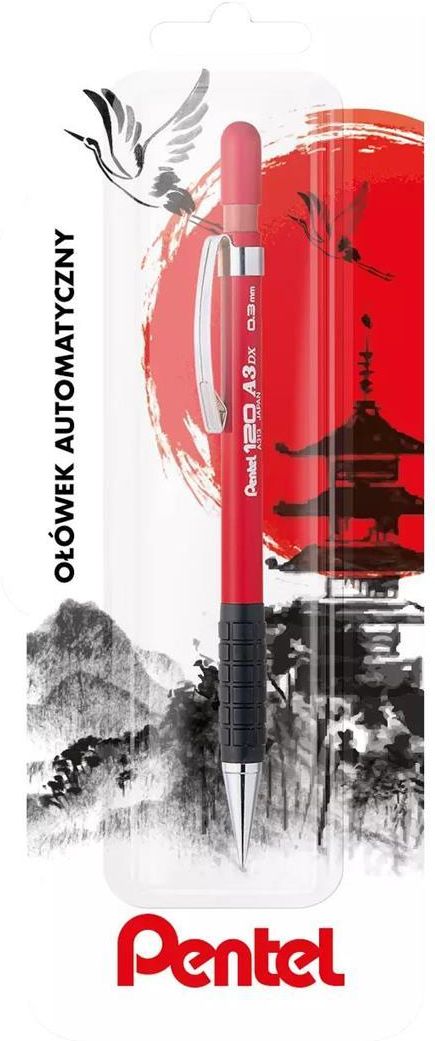 Specjalistyczy ołówek automatyczny. Idealny do prac kreślarskich, wykresów, jak również do zwykłego pisania. Posiada metalowy mechanizm zaciskowy, zdejmowany klips oraz gumkę wymienną. Dostępny w grubości: 0,3 mm - czerwony kolor obudow. Pakowany na blistrze x 1 sztuka. Wymiary: 400x210 mm Opakowanie: pudełko