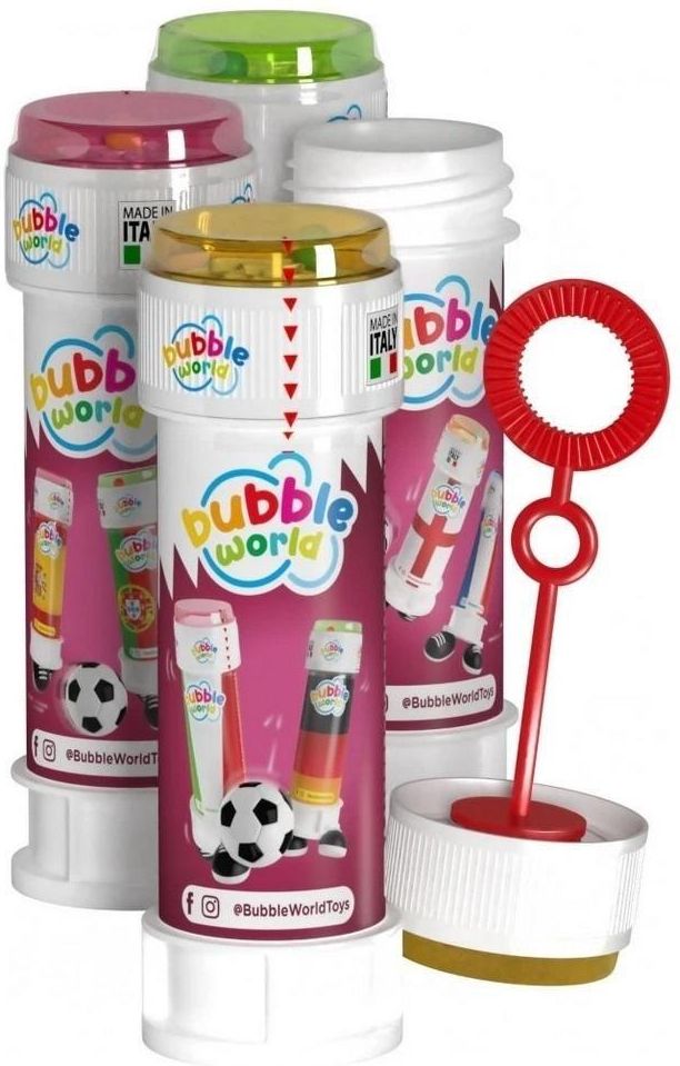 Bańki mydlane ucieszą nie tylko bawiące się dziecko ale i wszystkich wokół. Idealne również do wykorzystywania podczas różnego rodzaju imprez plenerowych, przyjęć urodzinowych czy festynów Pojemniczki wypełnione są specjalnym płynem do robienia baniek. Należy zamoczyć końcówkę w gotowym płynie, a po wyjęciu podmuchać. Na zakrętce znajduję się również gra zręcznościowa labirynt z kuleczką. Bańki o pojemności 60 ml Przeznaczony dla dzieci w wieku: 3+ Wielkość pojemnika: 11,5x4 cm Wyprodukowane we Włoszech MIX Baniek z licencją Mistrzostw Świata w Katarze - Piłka Nożna Zapakowane w tekturowy display. Mix 4 wzorów w opakowaniu Ilość: 36 szt Wymiary: 126x243 mm Grupa wiekowa: 3+ Opakowanie: pudełko