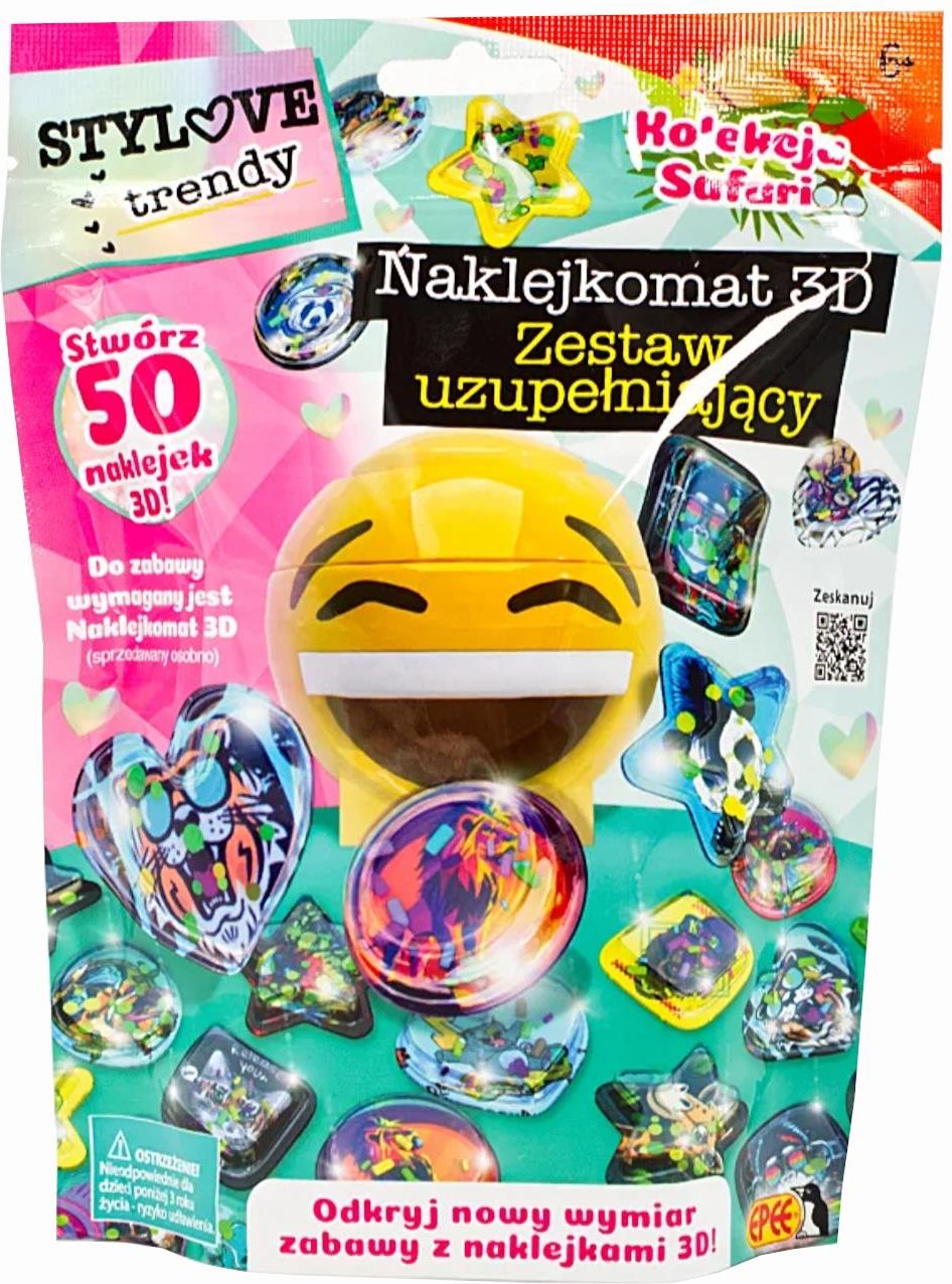 EPEE NAKLEJKOMAT 3D ZESTAW UZUPEŁNIAJĄCY Zestaw uzupełniający – twórz wyjątkowe naklejki 3D i rozwijaj swoją kreatywność! Zestaw uzupełniający do Naklejkomatu 3D – Kolekcja SAFARI to doskonała okazja, by rozwinąć swoją kreatywność i stworzyć do 50 wyjątkowych naklejek 3D! W zestawie znajdziesz dodatkowe ozdoby i akcesoria, które pozwolą Ci przenieść się do magicznego świata SAFARI. Dzięki temu zestawowi łatwo i szybko stworzysz trójwymiarowe naklejki, które nadadzą Twoim rzeczom i akcesoriom unikalny charakter. Z kolekcją SAFARI każdy może poczuć się jak artysta! Wystarczy wybrać dekoracje, umieścić je w maszynce i nacisnąć przycisk – gotowe! Stwórz naklejki, które idealnie ozdobią Twój laptop, telefon, zeszyt i wiele innych przedmiotów, nadając im niepowtarzalny wygląd. Zawartość opakowania: 50 nakładek, 50 plastikowych foremek, 50 kolorowych szablonów, dekoracje, instrukcja. Odkryj fascynujący świat Naklejkomatu 3D – idealny dla kreatywnych dusz i fanów rękodzieła! Poznaj całą kolekcję Naklejkomatu 3D – Kolekcja SAFARI i stwórz niezliczone, trójwymiarowe naklejki, które nadadzą Twoim rzeczom wyjątkowy charakter. To doskonały sposób na rozwijanie wyobraźni i zabawę z dekorowaniem! Kolekcja SAFARI pozwala przenieść Cię do magicznego świata, w którym tworzysz i personalizujesz swoje przedmioty. Ciesz się kreatywną zabawą, jaką daje tworzenie unikalnych naklejek! PRODUKT ORYGINALNY FIRMY