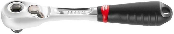 Grzechotka 1/4" RL.171 Facom Norme NF ISO 3315, ISO 3315, DIN 3122, ASME B107.10 Opis • Bardzo wysoka trwałość, niezależnie od warunków pracy. Nie wymaga konserwacji. Szczelność na pyły przemysłowe. • Mechanizm z 72 zębami o skoku 5°. • Blokada bezpieczeństwa nasadki: zapobiega zagubieniu nasadki w maszynach. • Odwracanie kierunku za pomocą dźwigni: łatwa obsługa nawet w rękawicach. Umożliwia wskazanie kierunku obrotów. • System „na docisk dłonią”, umożliwiający dociskanie główki grzechotki podczas dokręcania i odkręcania bez ryzyka przypadkowego odwrócenia kierunku obrotów. • Główka ultra-kompaktowa. • Rękojeść elastomerowa z dwóch materiałów: wysoka odporność na ścieranie i na najbardziej agresywne rozpuszczalniki stosowane w warsztatach: SP95, SP98, olej napędowy, aceton, płyn hamulcowy, Skydrol, Jet Oil, nafta. • Otwór w rękojeści: umożliwia zaczepianie podczas prac na wysokości. Informacje d [mm] 22 d1 [mm] 17,5 / 20 H [mm] 25 L [mm] 121 L1 [mm] 110 [g] 85 Dodatki Karty produktówPobierz listę referencji