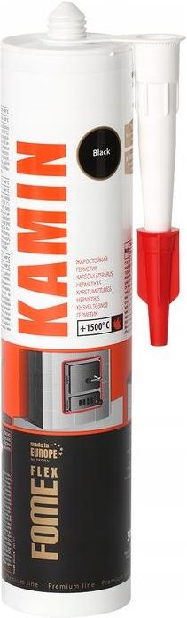 Uszczelniacz kominkowy FOME FLEX KAMIN wysokotemperaturowy 1500°C czarny 300 ml Wysokiej jakości jednoskładnikowe szczeliwo silikatowe, odporne na wysokie temperatury do +1500 °C. Służy do uszczelniania dziur, pęknięć i wgnieceń pomiędzy elementami konstrukcyjnymi ( metal, cement, beton, kamień ) narażonymi na działanie wysokich temperatur. Może być również używany do produkcji pieców, kotłów i kominków. Uszczelniacz ten łatwo nakłada się na każdą powierzchnię i jest odporny na bezpośredni ogień. Utwardzony uszczelniacz staje się nieelastyczny i nie pęka w spoinach statycznych. ZASTOSOWANIE Produkt doskonale nadaje się do: prac izolacyjno-uszczelniających, wymagających żaroodporności, do izolacji spoin i wypełniania pęknięć w piecach kaflowych, kominkach i kominach grzewczych, do uszczelniania drzwiczek kominkowych. Znakomicie przylega do podłoży metalowych, kamiennych, ceglanych i betonowych. Wyjątkowo wytrzymały i gładki. W wyniku nagrzewania masa staje się ciemnoszara, bardzo twarda i odporna na ekstremalne temperatury, nawet do +1500°C. Nadaje się do aplikacji na kamienie naturalne. Odporny na działanie otwartego ognia Czas tworzenia naskórka: 3 do 4 minut Czas utwardzania: 1-2mm / 24h Gęstość (DIN 53 479-B): 2,04g / cm³ Twardość (Shore A) (ISO 868): przed podgrzaniem 75±5