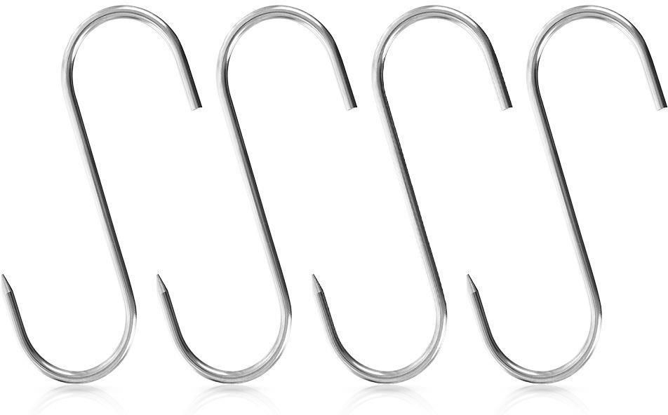 Zestaw 4 szt. haków wędzarniczych w kształcie litery S. Wykonane ze stali nierdzewnej. Posiadają z jednej strony ostre zakończenie.