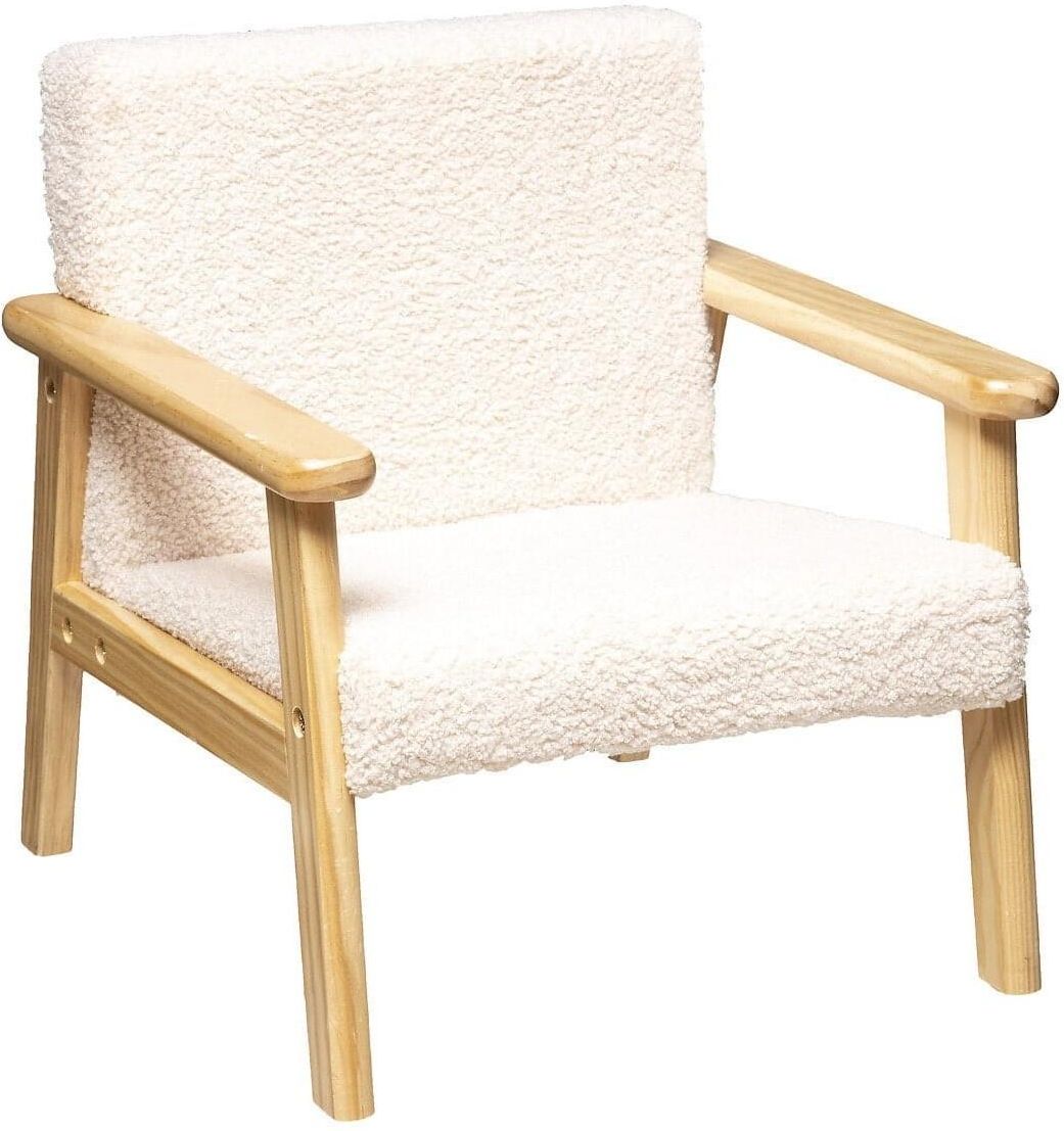 Krzesło Basile prezentuje się minimalistycznie, a przy tym uroczo. Dla twojego dziecka może stać się ulubionym miejscem do zabaw czytania czy po prostu odpoczynku. Rama krzesła Basile została wykonana z drewna sosnowego i jest bardzo stabilna, aby dziecko mogło czuć się bezpiecznie. Materiał obicia krzesła Basile przypomina owieczkę i jest przyjemny w dotyku, to nadaje mu uroczego i delikatnego wyglądu. Klasyczne połączenienaturalnego koloru drewna i obicia w białym kolorze łatwo daje się wpasować do aranżacji dziecięcego pokoju.