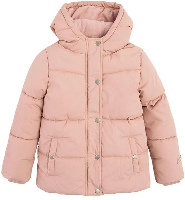 Kurtka jesienna z kapturem dla dziewczynki: - kolor: jasnoróżowy - zapięcie na suwak z zabezpieczeniem pod szyją - dodatkowe zapięcie na srebrne zatrzaski - kieszenie po bokach zapinane na zatrzaski - rękawy wewnątrz zakończone ściągaczami Materiał i technologie: - wodoodporny materiał zewnętrzny WP 1000 - 100% poliester - podszewka - 100% poliester - wypełnienie - 100% poliester Pranie i pielęgnacja: - Prać z podobnymi kolorami w temperaturze do 40° C. - Prać i prasować po lewej stronie.