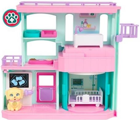 Welcome to the enchanting world of Little Live Pets Mama Surprise Families! Dive into a realm of delightful surprises and heartwarming fun with this Baby Care Clinic playset, designed to captivate young minds and inspire imaginative play. This playset is a treasure trove of excitement, featuring over 80 moms and pups to collect in Season 1. The Mama Surprise Families Baby Care Clinic is not just a playset; it's an adventure waiting to unfold. With its multi-level design and double-sided play areas, your child can explore endless scenarios and stories with their new Retriever family. Features and Play Areas X-ray Scanner: Use the scanner to discover how many puppies Mama is expecting. It's a thrilling way to engage with the playset and build anticipation. Rosy Cheeks: A simple wipe with water reveals Mama's rosy cheeks, indicating she's ready to welcome her new babies. Hospital Bed: Place Mama in the bed, close the curtains, and open them to reveal a new baby! Repeat this magical process to discover all three puppies. Bath Time Fun: Bathe the puppies to uncover their secret birthmarks, adding an extra layer of surprise and delight. Each puppy comes with its own unique pose and personality, exclusive to this playset. With five fun accessories, your child can care for and nurture their new furry friends in a variety of ways. What's Included? 3 x Puppies 5 x Toy Accessories 1 x Family Card 1 x Instruction Manual 1 x Mama Pup 1 x Care Clinic 1 x Collectors Guide 1 x Sticker Sheet No batteries are required, making this playset ready to go right out of the box. Designed for children aged 5 and up, it's the perfect gift for birthdays, holidays, or just because! Get ready to fall in love with the Mama Surprise Families and create cherished memories with your little one. This playset is more than just a toy; it's a gateway to creativity, nurturing, and endless fun!