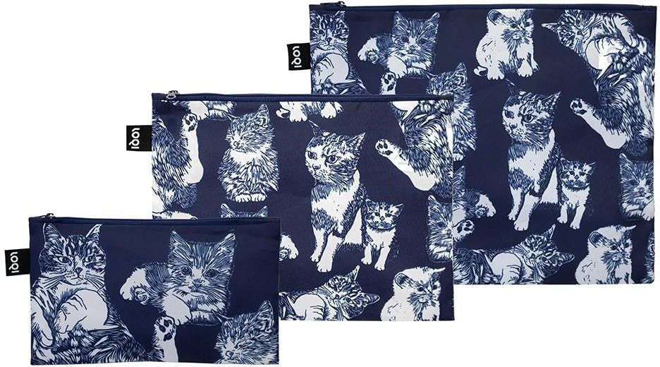 Zestaw trzech różnych saszetek Loqi Recycled Zip Pockets o uniwersalnym zastosowaniu.