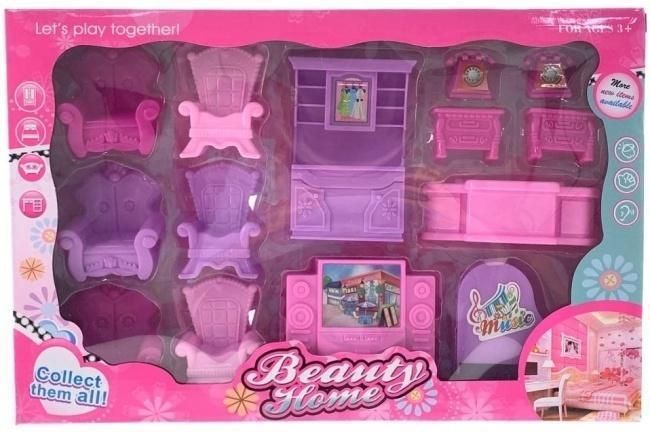 Przenieś świat wyobraźni swojej pociechy na wyższy poziom dzięki temu uroczemu zestawowi mebelków do domku dla lalek "Beauty Home"! W eleganckim, różowo-fioletowym kolorze, ten bogaty zestaw zawiera różnorodne elementy wyposażenia, które pozwolą na stworzenie przytulnego i stylowego salonu oraz …
