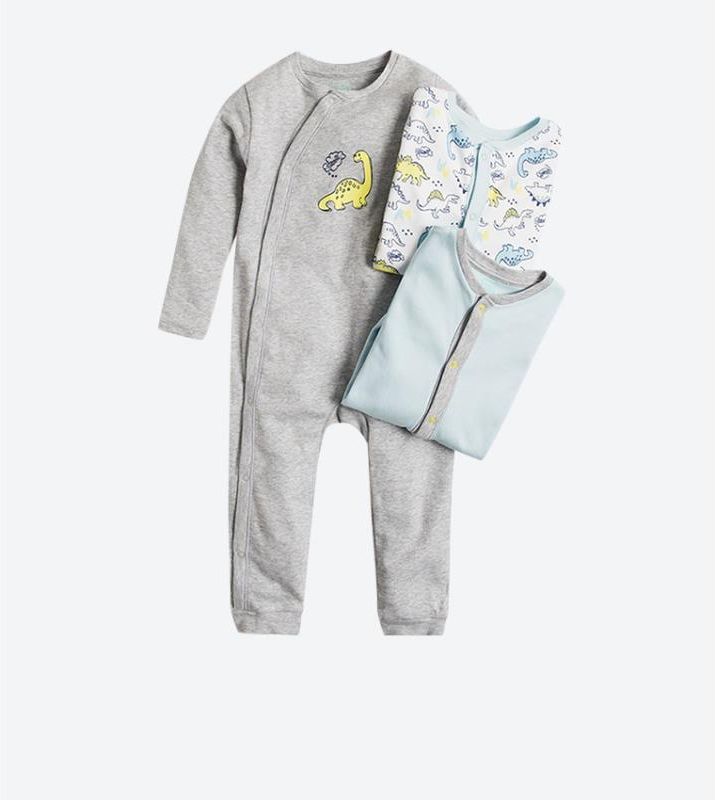 - pajac dla chłopca - w zestawie: 3 szt, - 100% bawełna - certyfikat Oeko-Tex Standard 100 - kolor biały - motywy graficzne - dinozaury - napy na całej długości - rękawy wywijane w niedrapki (rozmiary: 68-92 bez niedrapek) - nogawki zakończone stópkami (rozmiary: 86-92 bez stópek) - pielęgnacja: prać z podobnymi kolorami w temperaturze do 40° C. Prać i prasować po lewej stronie.