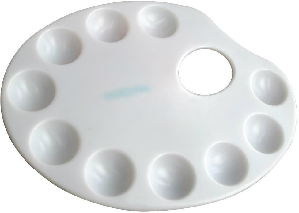 Owalna paletka malarska Jest to owalna paleta przeznaczona do malarstwa, stworzona z tworzywa sztucznego. Zaprojektowana z 10 wgłębieniami, pozwala na mieszanie różnych kolorów. Jej design sprawia, że można na niej przechowywać różne odcienie farb, a następnie łączyć je w unikalną paletę barw. Zalecana przede wszystkim do pracy z farbami akrylowymi, temperami czy akwarelami. Jej ergonomia zapewnia komfort w trzymaniu, a jednocześnie jest lekka, co ułatwia manipulowanie. Dodatkowym atutem jest łatwość jej czyszczenia. Atrakcyjna paletka malarska dostępna jest w kolorze białym. EAN: 5907437631027