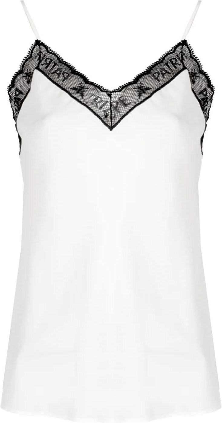 Na cienkich regulowanych ramiączkach, które zapewniają idealne dopasowanie do każdej sylwetki, oferując nie tylko styl, ale także komfort noszenia przez cały dzień. Dopasowany fason podkreśla naturalne kształty, dodając elegancji i pewności siebie, niezależnie od okazji, na którą zdecydujesz się go założyć. Wykończenie z koronki dodaje subtelnego uroku i wyrafinowania, czyniąc ten produkt nie tylko praktycznym, ale i niezwykle stylowym wyborem. Na koronce nazwa marki dyskretnie podkreśla prestiż i jakość, jaką niesie ze sobą ten wyjątkowy element garderoby. Wykonany z wysokiej jakości tkaniny z dodatkiem jedwabiu, co nadaje mu luksusowy wygląd i niezwykłą miękkość, przyjemną dla skóry. Wyprodukowany we Włoszech, co gwarantuje najwyższą jakość wykonania i dbałość o każdy, nawet najmniejszy szczegół, co sprawia, że jest to produkt klasy premium.