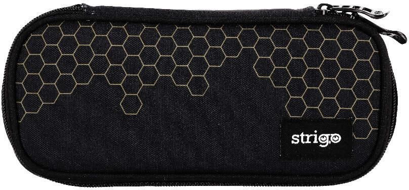 Piórnik szkolny Strigo z kolekcji Plastry Miodu w kolorze czarnym. Wykonany z wysokiej jakości materiału, który jest odporny na zabrudzenia. Piórnik jest usztywniany i posiada dużą kieszeń wewnętrzną oraz klapka z miejscem na przybory piśmiennicze. Na górnej pokrywie znajduje się kieszonka. Piórnik posiada wysokiej jakości suwaki, które otwierane są zarówno z lewej jak i z prawej strony. Wymiary: 25cm x 11cm x 5cm