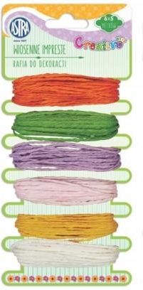 RAFIA DO DEKORACJI WIOSENNE IMPRESJE ASTRARafia do dekoracjiIdealne do scrapbookingu, ozdabiania bombek i jajek styropianowych, kartek okolicznościowych, zaproszeń i zakładek do książek.Świetnie nadają się do pakowania prezentów oraz do tworzenia dekoracji świątecznych i stroików.6 sztuk x 5 …