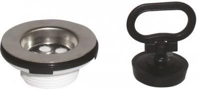 Wylot umywalki z korkiem konstrukcja: chrom materiał: plastik korek z uchwytem ułatwiającym przenoszenie Rozmiar gwintu 5/4" grubość zlewu 0-70 mm
