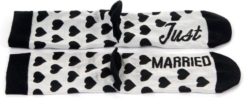 - skarpetki z limitowanej kolekcji - ozdobione wzorem w serca, jedna z napisem na spodzie: "Just", druga z napisem: "Married" - wykończone ściągaczem - palce, pięta oraz ściągacz w kontrastowym kolorze - materiał: 70% bawełna, 20% poliamid, 8% poliester, 2% elastan - prać w temperaturze do 40°C, nie czyścić chemicznie, nie suszyć w suszarce bębnowej, nie wybielać, nie prasować - rozmiar: 39-41