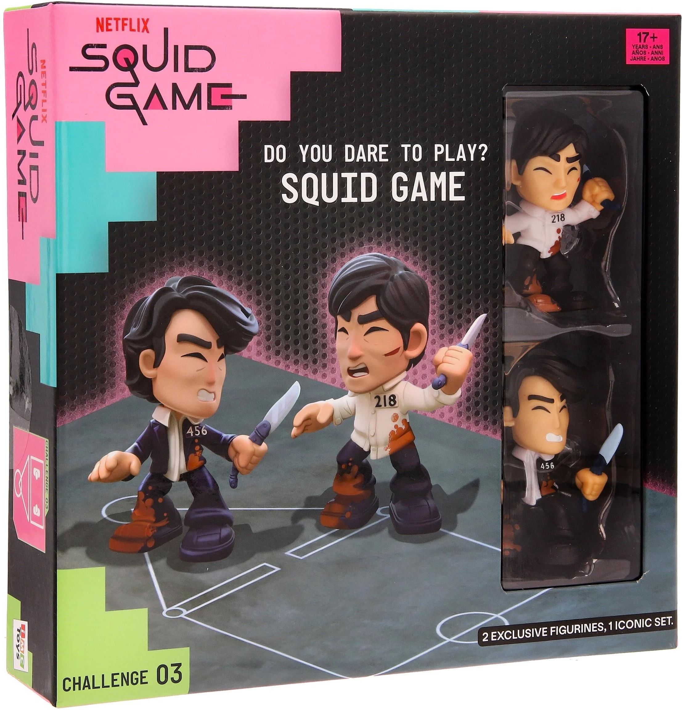 Play the Squid Game challenges at home. Collect 3 of the iconic games from the show: Tug of War, The Glass Stepping Stones and the Squid Game. In each box you will find one of the games. Recreate the scene with the 2 figurines and the mini set, optimal for display.. Whether displayed proudly on a …