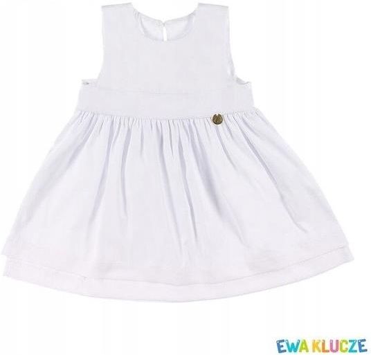 Sukienka z kolekcji "Ceremony" wykonana z miękkiej i przyjemnej w dotyku białej tkaniny. Z tyłu w pasie jest wiązana kokardka. . Z tyłu znajduje się guziczek. Na przodzie jest złota zawieszka z misiem.