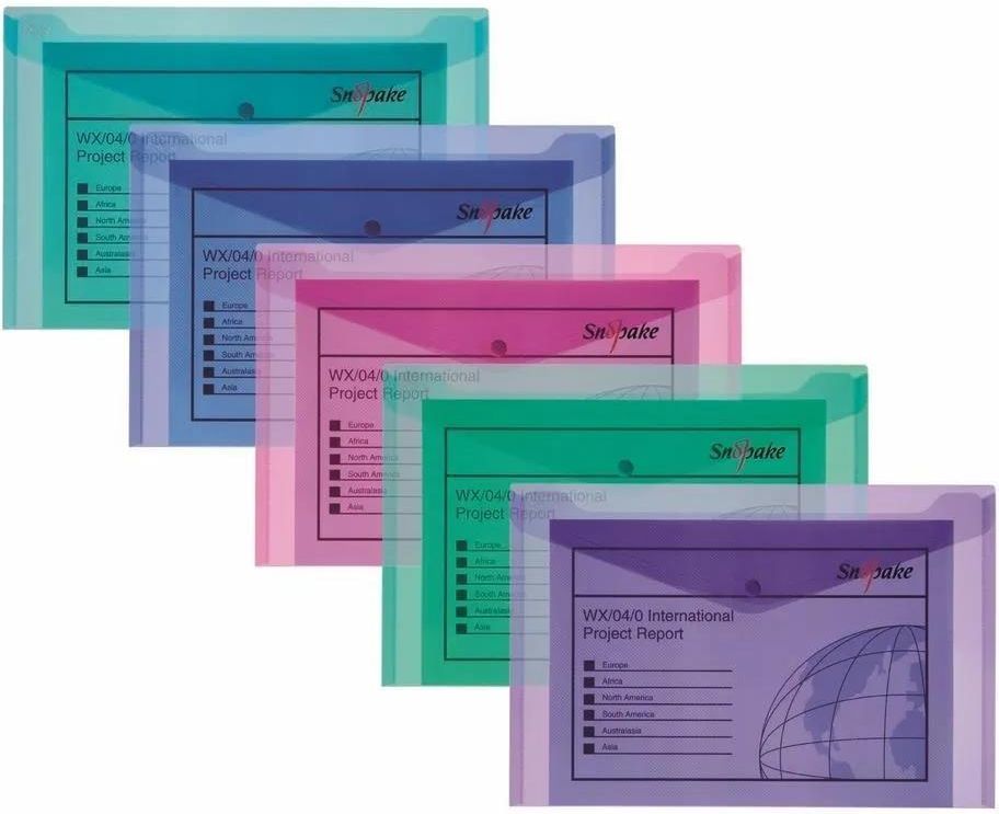 Teczka kopertowa A4. Bardzo starannie wykonana z polipropylenu. Zamykana na zatrzask. Dostępna w 5 kolorach. Towar wysyłany losowo. Opakowanie: folia
