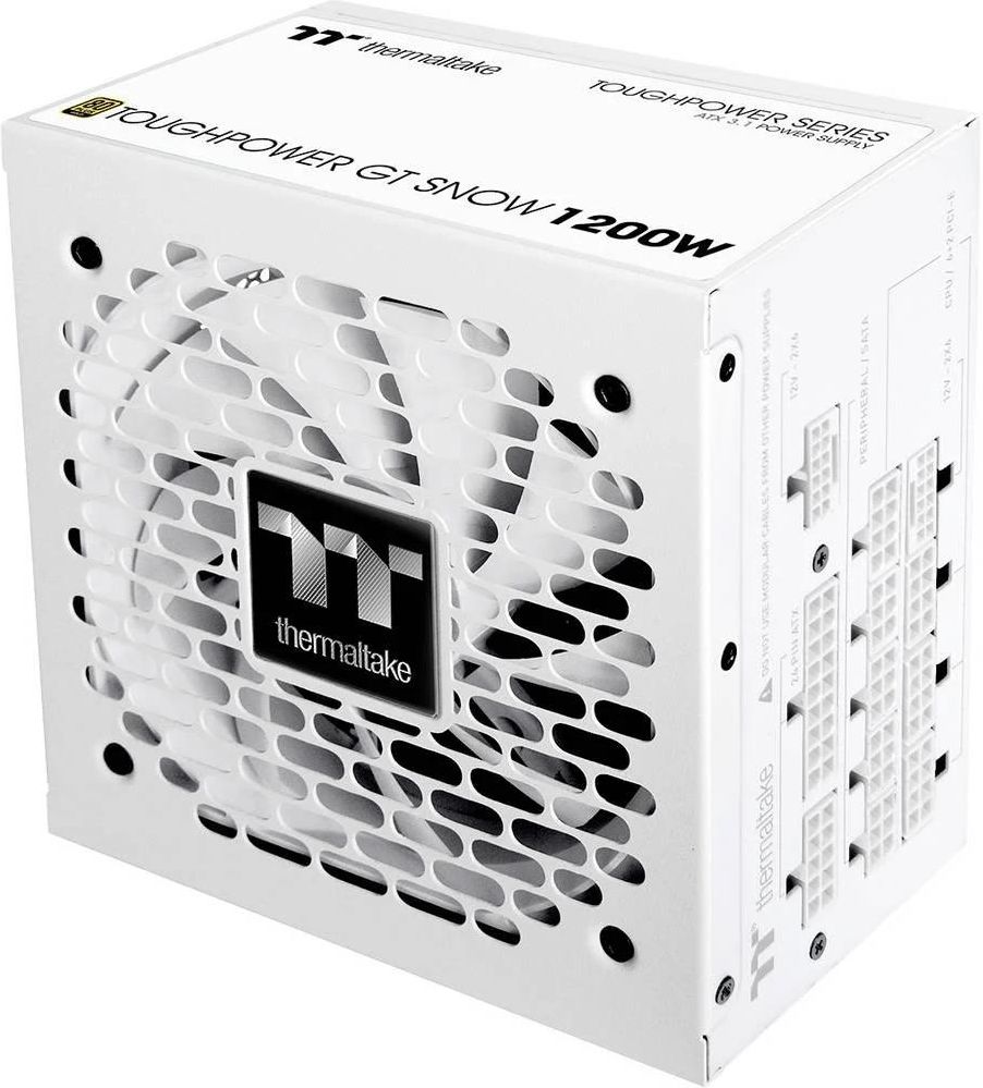 W pełni modułowa seria Toughpower GT Snow jest kompatybilna ze standardem ATX 3.1. Natywny, modułowy interfejs PCIe 12V-2x6 (12+4 piny) zapewnia wydajne zasilanie kart graficznych PCIe 12+4 piny. Seria Toughpower GT Snow jest w pełni kompatybilna ze specyfikacją ATX 3.1, co oznacza obsługę do 200% spadku mocy, osiąganie 60% sprawności przy niskim obciążeniu i zgodność z wymaganymi standardami czasowymi zasilania. Seria Toughpower GT Snow jest wyposażona w złącze PCIe 12V-2x6, które zapewnia wysoką i stabilną wydajność, umożliwiając zasilaczowi natywną obsługę kart graficznych nowej generacji. Moc podana na 12-pinowym złączu PCIe oznacza zalecaną moc (patrz wytyczne projektowe firmy Intel). Dołączone złącze PCIe Gen 5.1 (12+4-pinowe) do zasilacza Toughpower GT Snow 1200 W może dostarczyć do 600 W mocy dla kart graficznych PCIe 12+4-pinowych. Uwaga: Zalecana moc to szacunkowe zapotrzebowanie systemu na energię. Rzeczywiste zapotrzebowanie na energię może się różnić w zależności od konkretnych komponentów, sposobu użytkowania i wielu innych czynników. Przed użyciem kabla PCIe 12+4pin należy zapoznać się z zaleceniami producenta karty graficznej dotyczącymi zasilania. Wyposażony w 120-milimetrowy wentylator z łożyskami hydraulicznymi, który utrzymuje tarcie na bardzo niskim poziomie. Zaprojektowany z wentylatorem Thermaltake Smart Zero, który reguluje prędkość obrotową i minimalizuje niepożądany hałas. Wydajna pojedyncza szyna +12 V zapewnia odpowiednią moc potrzebną do zapewnienia optymalnej kompatybilności. Zastosowanie obwodów LLC i DC-DC zapewnia bardzo stabilną pracę i lepszą regulację napięcia. Oferuje użytkownikom szeroki wybór kabli, zasilając system korzystnym napięciem. Płaskie, białe kable o niskim profilu ułatwiają zarządzanie okablowaniem, redukują bałagan i zwiększają przepływ powietrza wewnątrz obudowy. Aby chronić sprzęt, seria Toughpower GT Snow została wyposażona w zabezpieczenia klasy przemysłowej: OCP (zabezpieczenie przed nadmiernym prądem), OVP (zabezpieczenie przed przepięciem), UVP (zabezpieczenie przed zbyt niskim napięciem), OPP (zabezpieczenie przed przepięciem), SCP (zabezpieczenie przed zwarciem), OTP (zabezpieczenie przed przegrzaniem). Seria Toughpower GT Snow oszczędza energię dzięki wysokiej efektywności energetycznej sięgającej 90% i posiada certyfikat 80 PLUS® Gold. OPIS TECHNICZNY Wymiary (szer. / wys. / gł.): 150 mm (szer.) x 86 mm (wys.) x 140 mm (gł.) PFC (korekcja współczynnika mocy): aktywna PFC Dobry sygnał zasilania: 100-250 msec Czas podtrzymania: > 17 msek przy 80% pełnego obciążenia Prąd wejściowy: 15-10A Zakres częstotliwości wejściowej: 50-60Hz Napięcie wejściowe: 100V - 240V~ Temperatura pracy: 0°C do + 40°C Wilgotność robocza: 5% do 85%, bez kondensacji Temperatura przechowywania: -40°C do + 70°C Wilgotność przechowywania: 5% do 85%, bez kondensacji System chłodzenia: Wentylator z łożyskiem hydraulicznym 12 cm Wydajność: Spełnia wymagania 80 PLUS®Gold przy napięciu wejściowym 115 Vac. MTBF: Minimum 100 000 godzin Zatwierdzenie bezpieczeństwa: CE/UKCA/ICES/TUV/LVD/RCM/CB/FCC/cTUVus/BSMI/CCC/BIS/S-MARK/EAC PCI-E 6+2PIN: 5 PCIE 12+4PIN: 1 Ochrona: OVP/UVP/OCP/OPP/OTP/SCP Więcej informacje znajduje się na stronie producenta