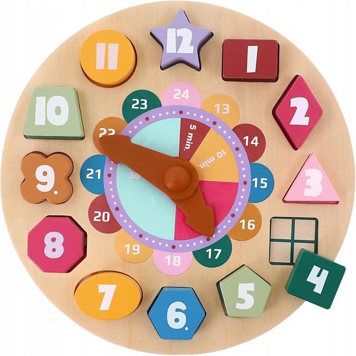 Trefl Zabawka drewniana Tick Tock 61597 Tick Tock to zegar z klockami wykonany z drewna, który nie tylko pomaga dzieciom uczyć się o czasie, ale również rozwija ich zdolności manualne. Na klockach nadrukowane są liczby oraz kolorowe grafiki na dole, które ułatwiają dopasowanie ich do odpowiednich miejsc na zegarze. Dodatkowo, wżłobienia na zegarze ułatwiają precyzyjne ułożenie klocków. Zegar posiada plastikowe, ruchome wskazówki, które jednocześnie wskazują godzinę przedpołudniową i popołudniową, a także wydają charakterystyczny dźwięk "tykania". Dzięki temu dzieci mogą praktykować odczytywanie czasu i rozwijać swoją zmysłową percepcję. Puzzle drewniane z serii Wooden Toys firmy Trefl to tematyczne układanki przeznaczone dla maluchów powyżej 18. miesiąca życia. Dzięki wygodnym uchwytom znajdującym się na kształtowych puzzlach, dziecko z łatwością może wyjąć każdy element i odkryć obrazek, który się pod nim kryje! Układankę można zabrać ze sobą wszędzie - dzięki ramce idealnie sprawdzą się poza domem: na pikniku czy w podróży. Żywe kolory i różnorodne kształty zachęcają maluchy do zabawy, a duże elementy gwarantują bezpieczeństwo Twojego dziecka. Układanie puzzli wspiera rozwój zdolności manualnych i zmysłu obserwacji dziecka. Materiały wykorzystane do stworzenia zabawek Wooden Toys posiadają niezbędne atesty i są bezpieczne dla dzieci. Wykorzystane drewno pochodzi z odpowiedzialnej gospodarki leśnej, co potwierdza certyfikat FSC.