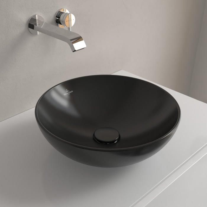 - Dłuższy bok: 38 cm - Krótszy bok: 38 cm - Typ: nablatowa - Kształt: okrągła - Otwór na baterie: nie - Kolor: czarny - Materiał: ceramika - Powłoka ochronna: tak - Przelew: nie - Położenie niecki umywalki: na środku