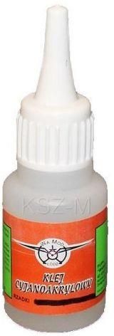 Klej cyjanoakrylowy stosuje się do klejenia drewna, porcelany, gumy, tworzyw sztucznych oraz metali. Kleje rzadkie pozwalają łączyć punktowo, bez widocznej spoiny, a wiązanie następuje błyskawicznie. Sposób użycia: Klejone powierzchnie muszą być suche i czyste. Na jedną z powierzchni nakładamy cienką warstwę kleju (im cieńsza warstwa, tym szybsze wiązanie) oraz natychmiast dociskamy drugą.