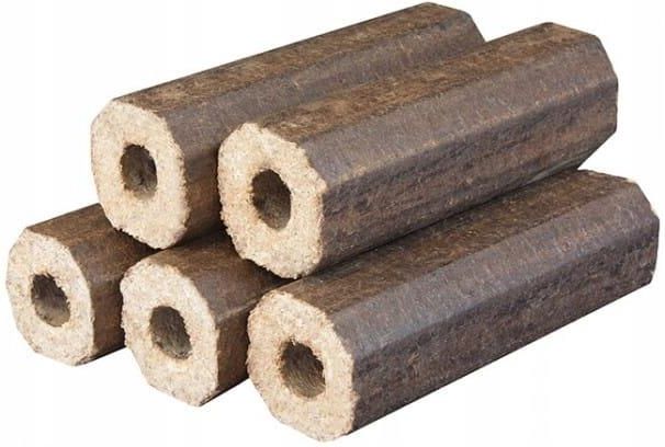 Brykiet drzewny 10 kg Pini Kay Brykiet Pini-Kay produkowany jest z czystej trociny dębowej oraz bukowej. Brykiet ołówkowy to materiał grzewczy bardzo wysokiej jakości, w pełni ekologiczny. Pini-Kay swoją formą przypomina ołówek – kształtem nawiązuje do walca lub kwadratu o zaokrąglonych bokach, z dziurą w środku, przypominającą miejsce na ołówkowy grafit. Właściwości brykietu kominkowego Pini-Kay (ołówek): Materiał w 100% ekologiczny. Wyróżnia się niską wilgotnością – jest to materiał suchy. Charakteryzuje się wysoką wartością kaloryczności – brykiet Pini-Kay jest niezwykle wydajny oraz doskonale utrzymuje ciepło, stopniowo je oddając. Cena brykietu jest niższa od ceny opału w postaci drewna. Spośród innych typów brykietów, ołówkowy charakteryzuje się najwyższym stopniem sprasowania, dzięki czemu zawdzięcza swoją twardość oraz gęstość. Brykiet Pini-Kay jest podpalany po bokach, co powoduje dodatkowe przesuszenie brykietu. Im bardziej suchy brykiet, tym mniej pochłania wilgoć, dłużej się spala i jest bardziej wydajny. Brykiet ołówkowy to przede wszystkim niska wilgotność, którą nie może pochwalić się tradycyjne drewno. Produkowany przez nas brykiet cechuje się niską zawartością popiołu (0,5%), dzięki czemu nie zanieczyszcza przewodów grzewczych kominka.