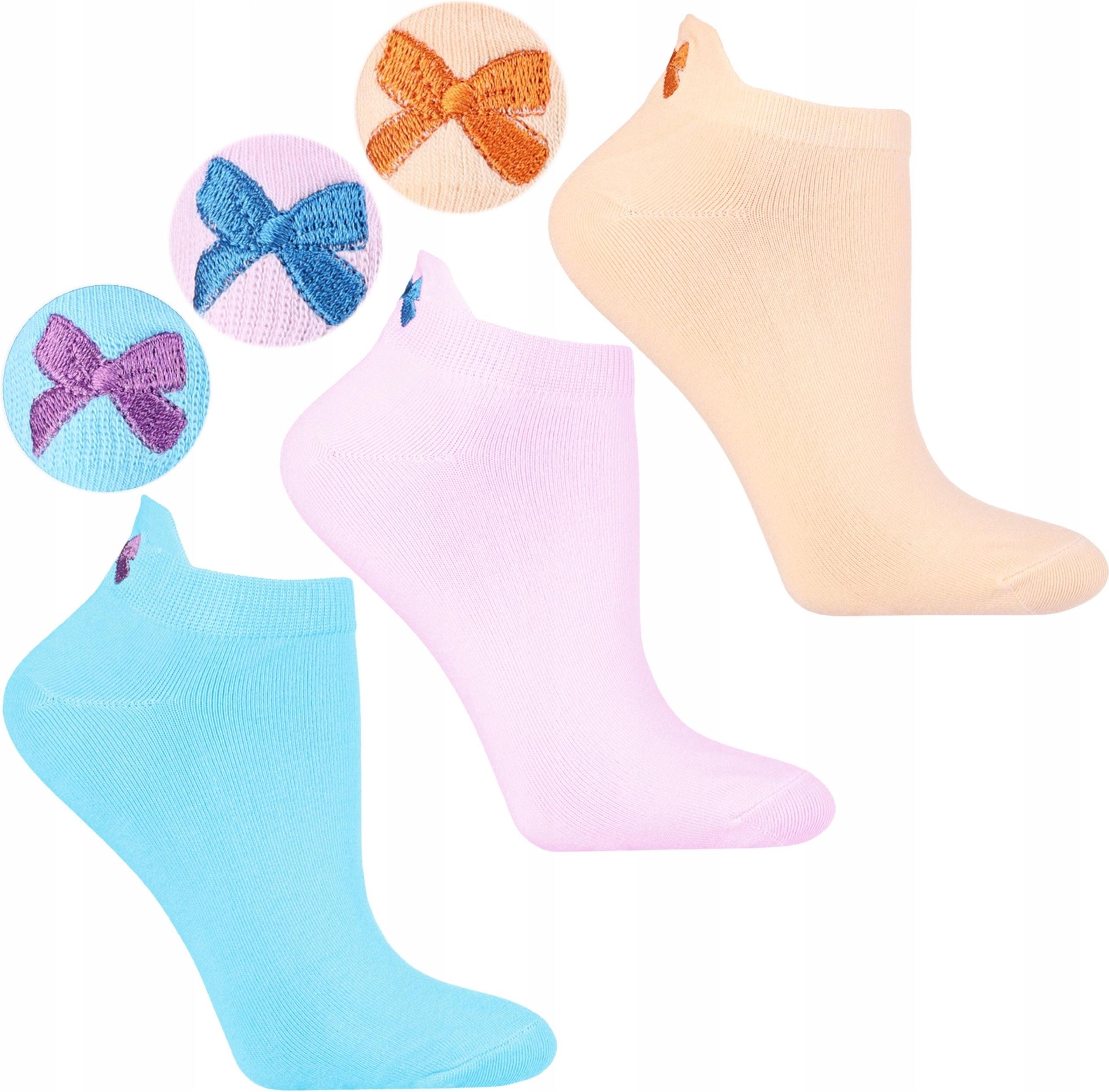 Damskie Skarpetki Stopki z Haftowaną Kokardką Bawełniane 3-pary MORAJ 38-41 Wschowa