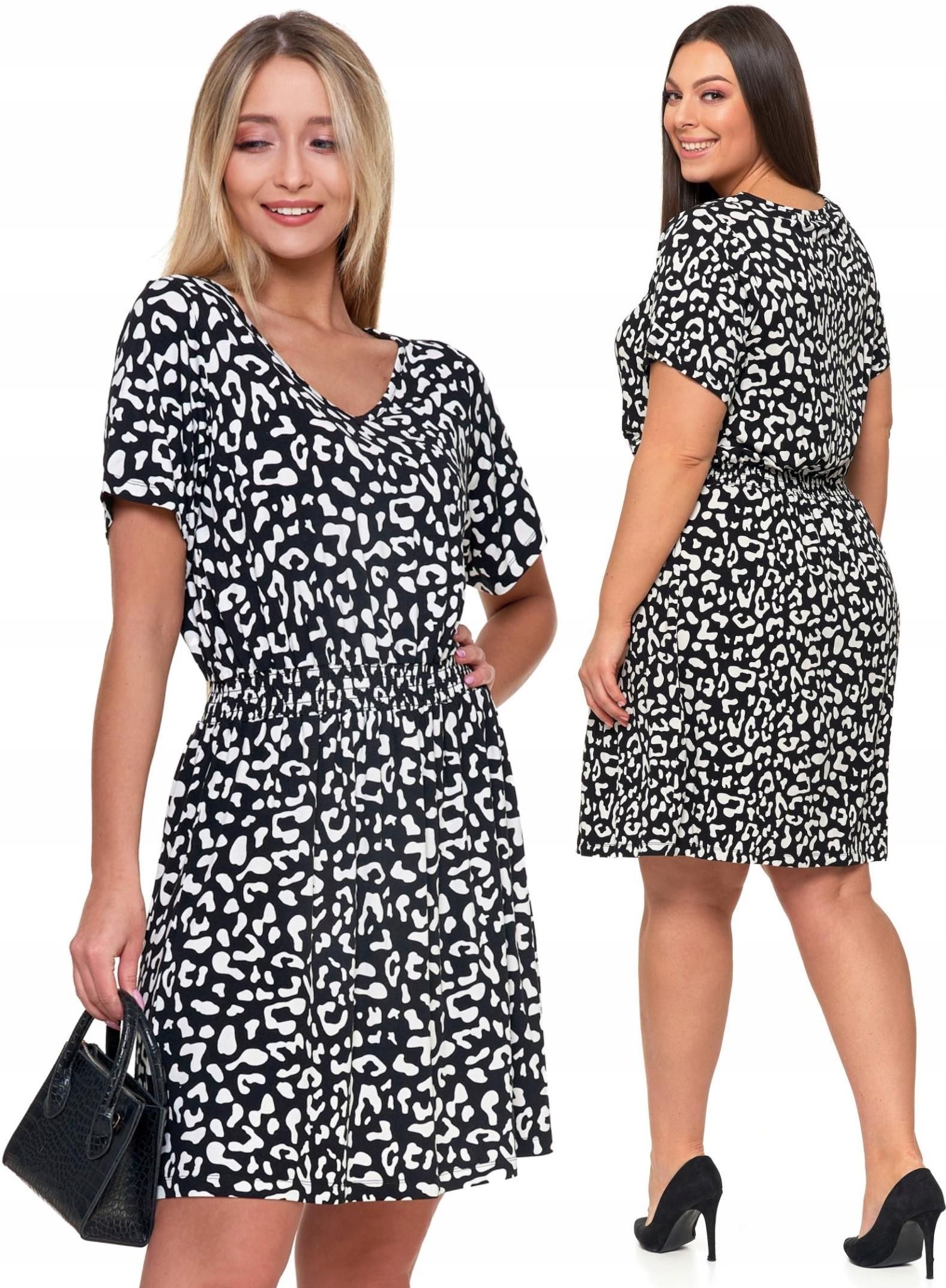 Krótka Sukienka Damska Do Kolan Modna Zwiewna Czarno Biała Panterka MORAJ S Wschowa