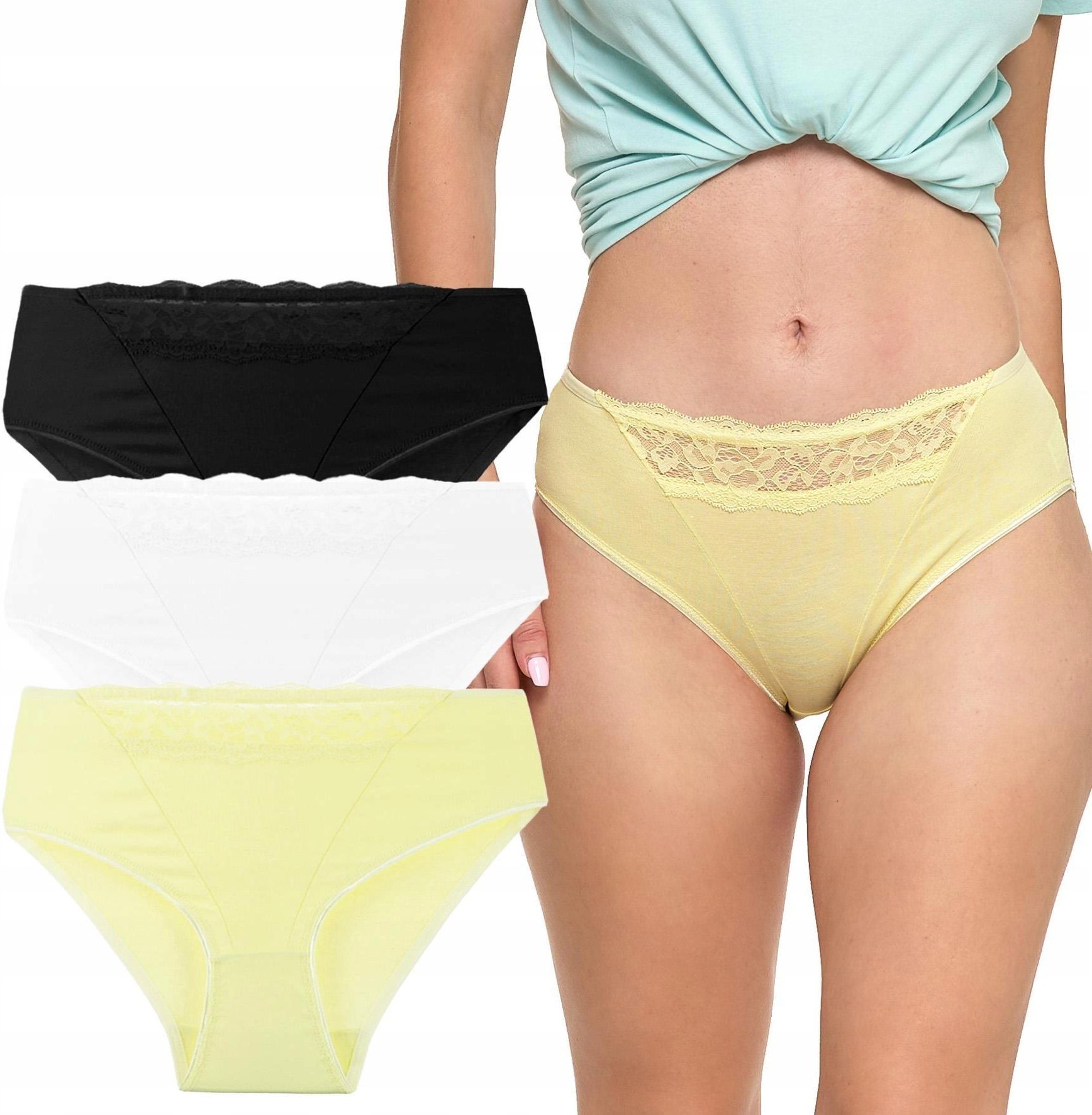 Majtki Figi Szorty Damskie Bawełniane Gładkie Koronkowe MORAJ 3-szt - XL Wschowa
