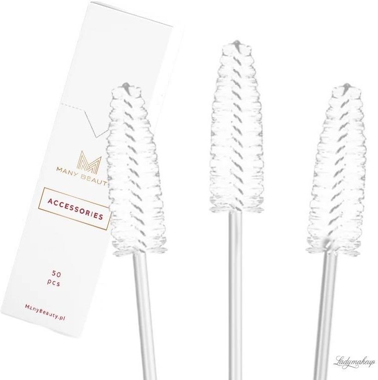 Mascara Brush - White marki Many Beauty. Szczoteczki do rzęs. Idealnie sprawdzą się w zakładach kosmetycznych salonach i pracy indywidualnej makijażystów i wizażystów. Zapewnią sprawną i higieniczną aplikację tuszu do rzęs, a także profesjonalnie rozdzielą i rozczeszą włoski. Zestaw składa się z 50 sztuk, jednorazowych białych szczoteczek wykonanych z nylonu. Są one gładkie i elastyczne, dzięki czemu dopasują się do kształtu oka. Umieszczone zostały w ekologicznym, papierowym opakowaniu, które jednocześnie może posłużyć do ich przechowywania. Zestaw szczoteczek. Są jednorazowe i higieniczne.Idealne dla salonów kosmetycznych.Wykonane z solidnych materiałów m.in. nylonu.