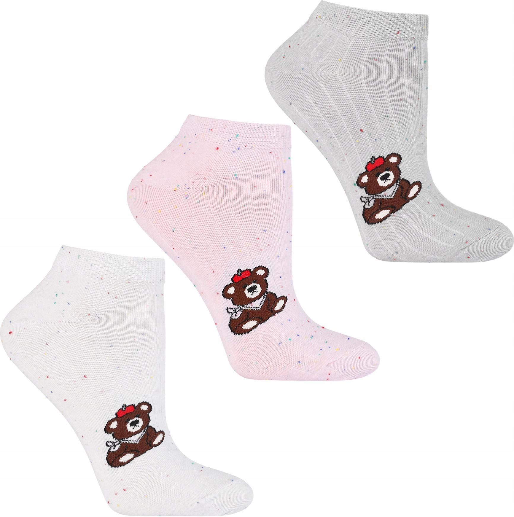 Skarpetki Damskie Stopki Bawełniane Krótkie z Misiem Mix Kolor MORAJ 38-41 Wschowa