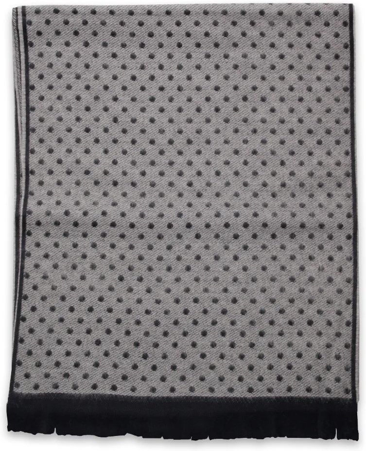 Szal wełniany Kolor: granatowy Tkanina: 100% wełna Długość: 190 cm Szerokość: 37 cm Wyprodukowano we Włoszech Elegancki szal w uniwersalnych kolorach. Urozmaici każdą koszulę, kurtkę czy płaszcz. Zakończony krótkimi frędzlami.