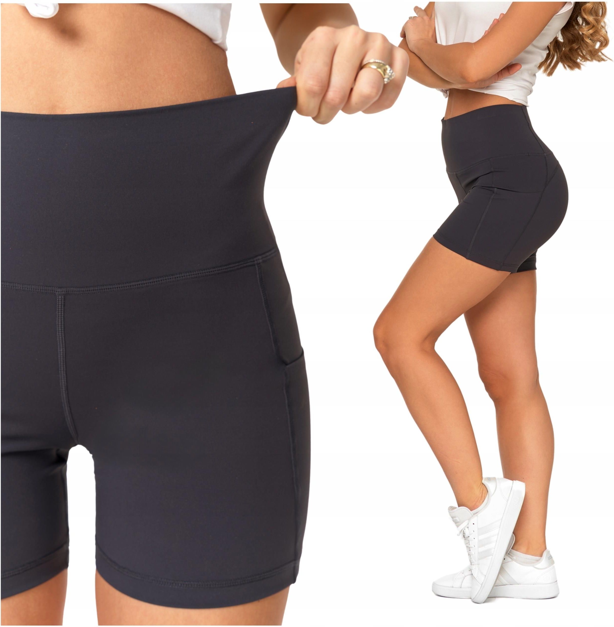 Szorty Sportowe Damskie z Wysokim Stanem i Keszeniami CZARNE MORAJ M Wschowa